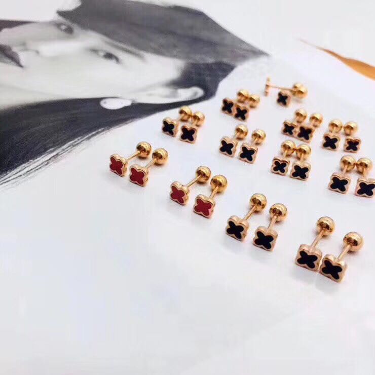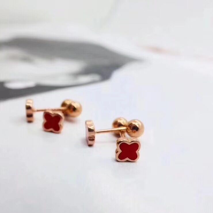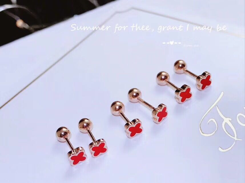 18K玫瑰金 四叶草小清新款耳钉两戴Mini 四叶草直径0.4MM 螺丝头0.25MM 小巧精致