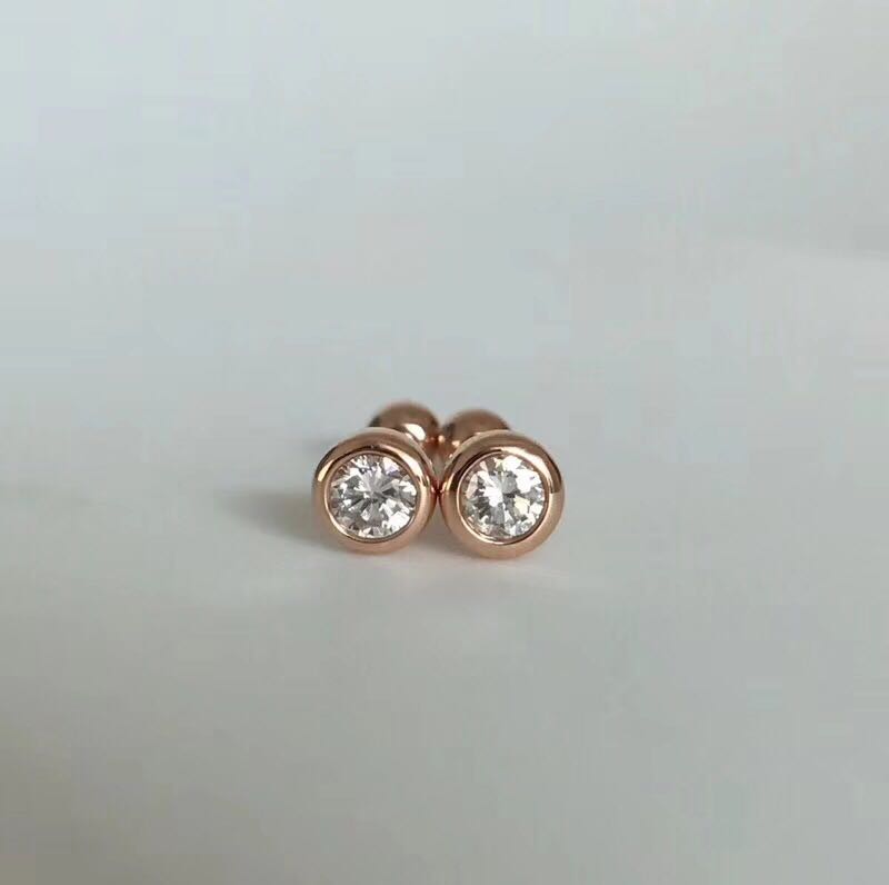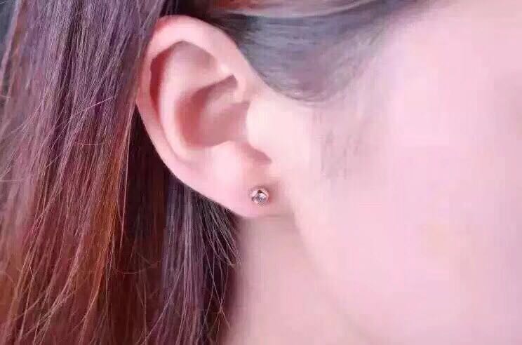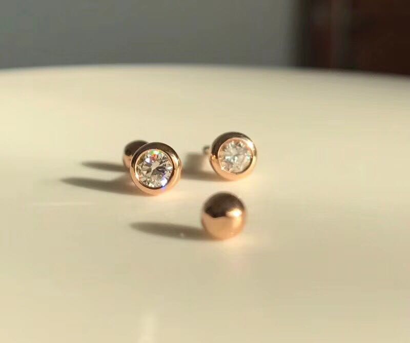 18K金钻石耳钉 螺丝扣紧固,钻石8分一对,前后均可佩戴,一款两戴。