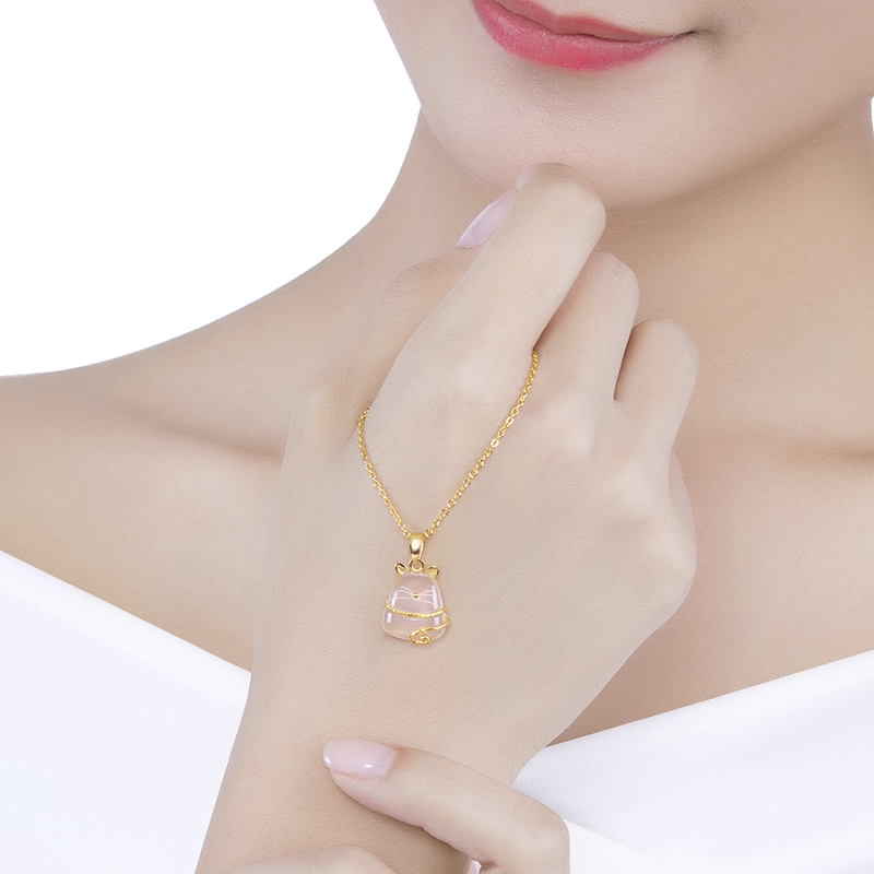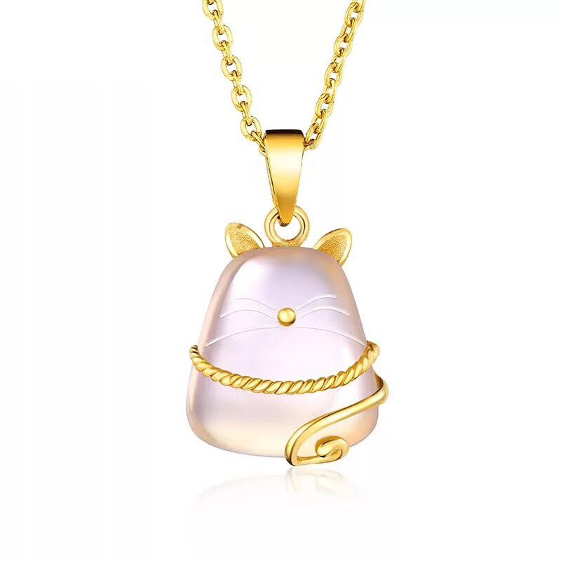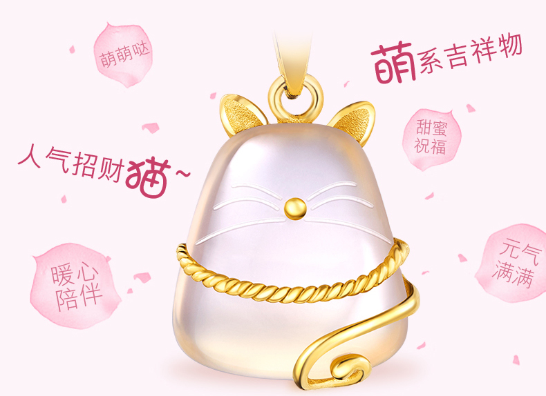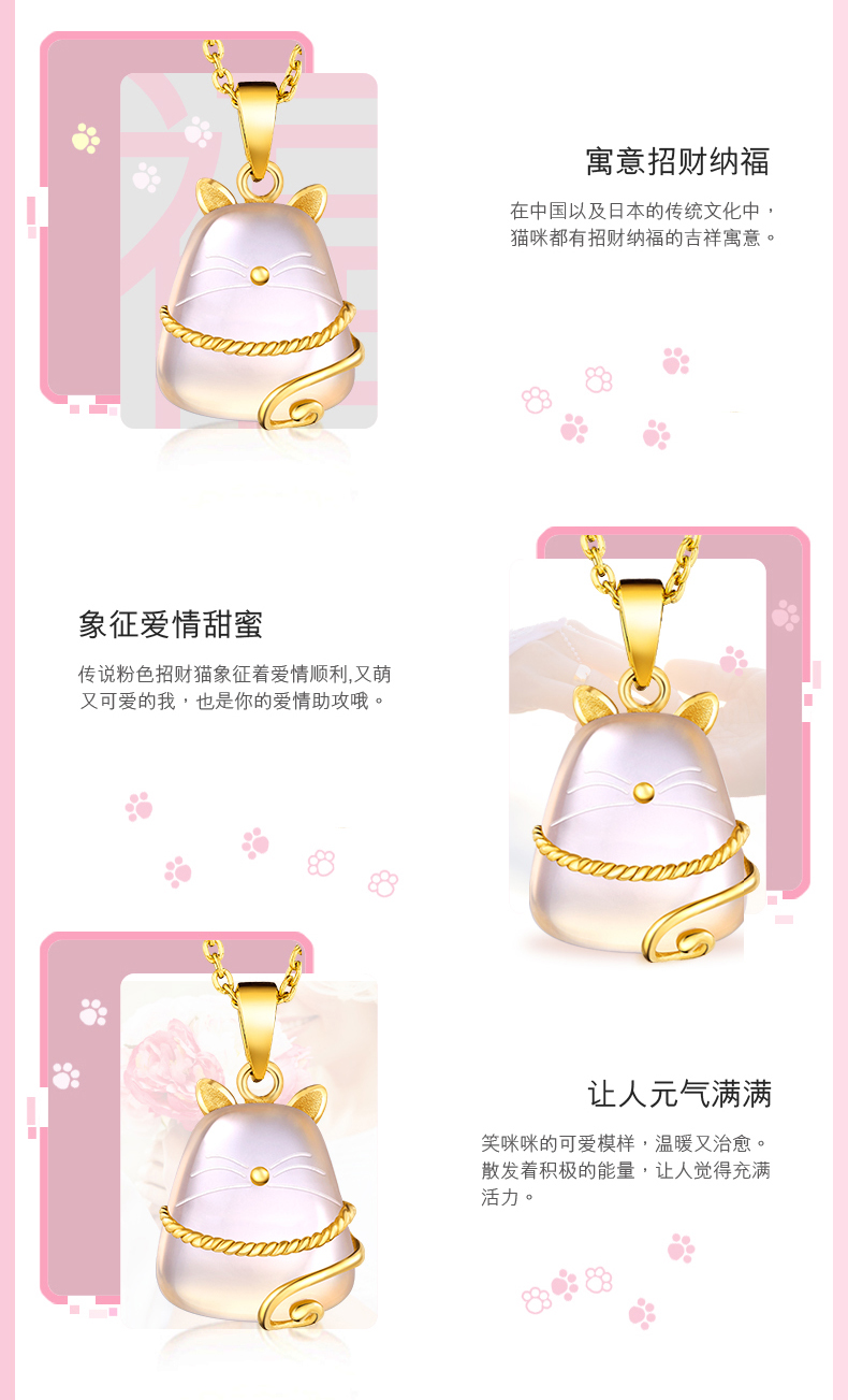 足金镶嵌的粉粉猫咪 所有货品都有做质检证书的,