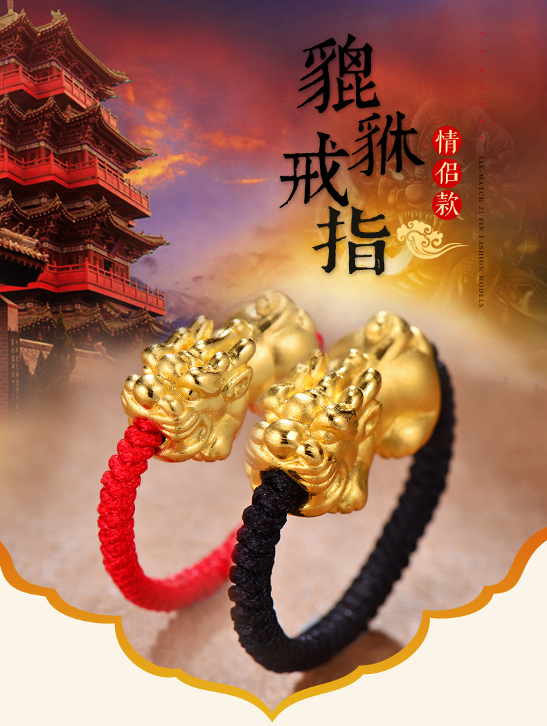 关于爱 足金貔貅 转运珠 时来运转 个性情侣戒指 | |