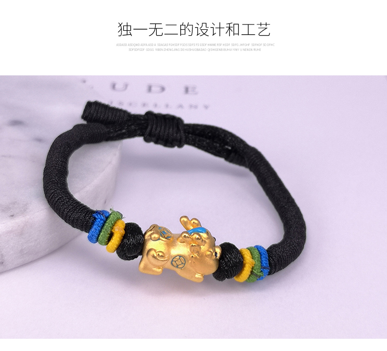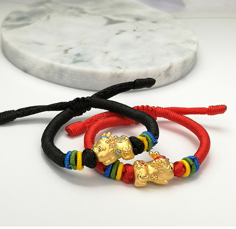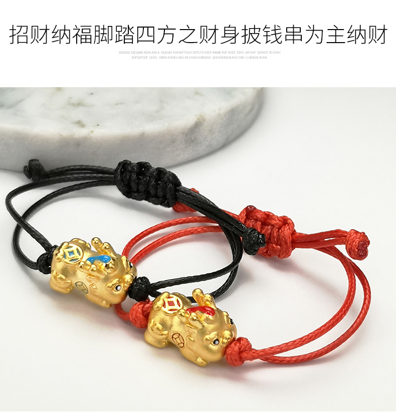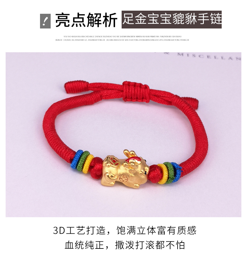 足金999黄金手链男女宝宝貔貅手串可调节皮绳编织红绳手链正品