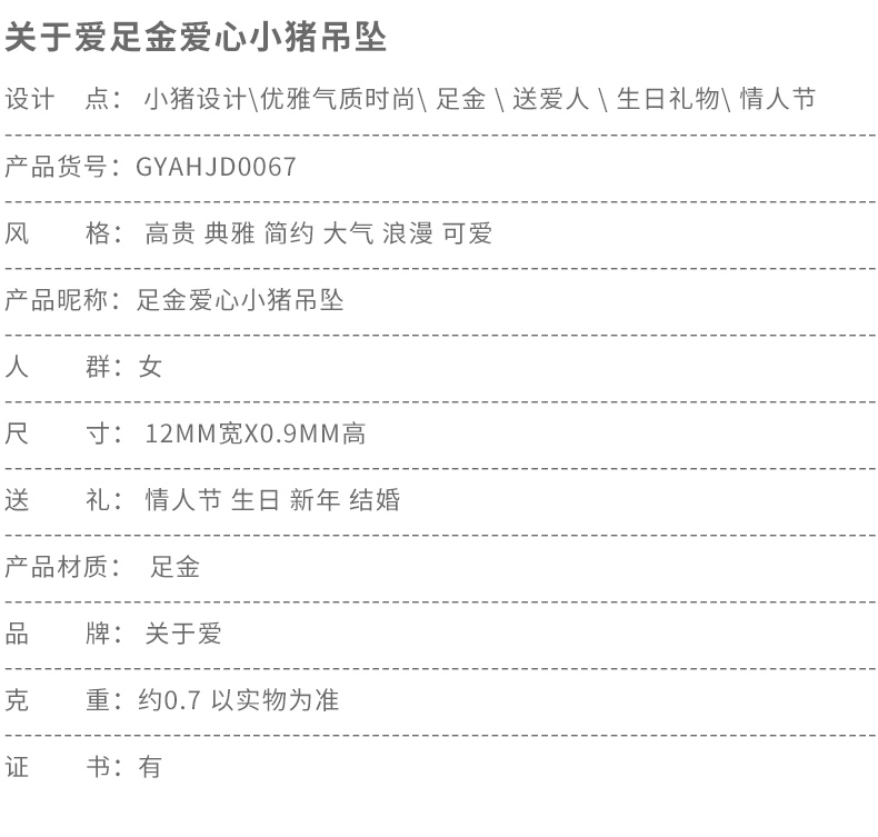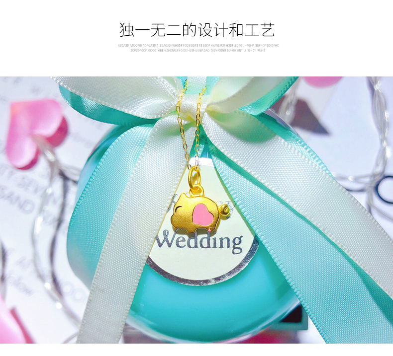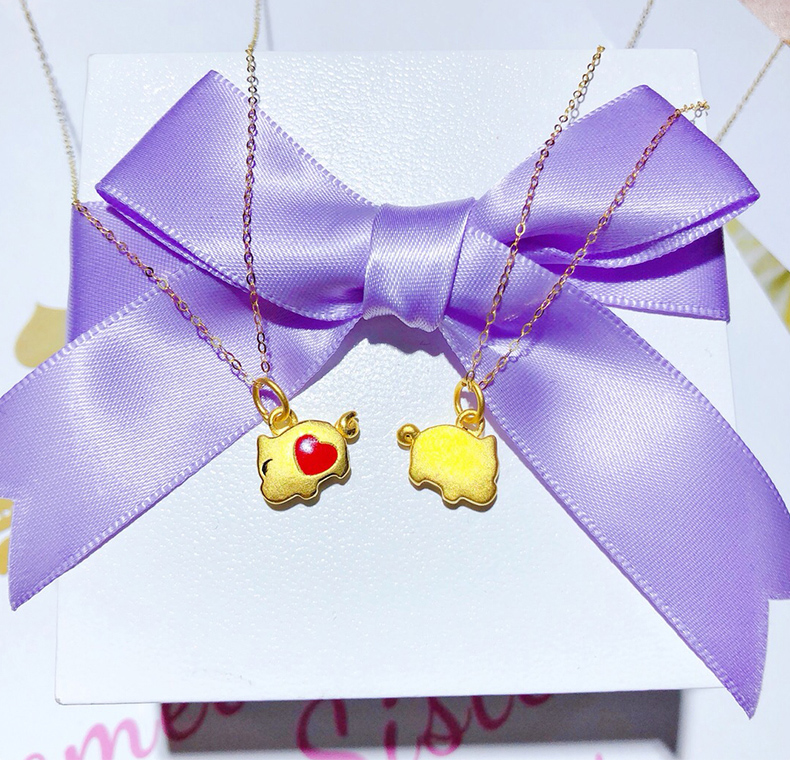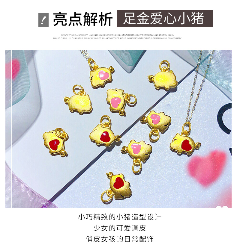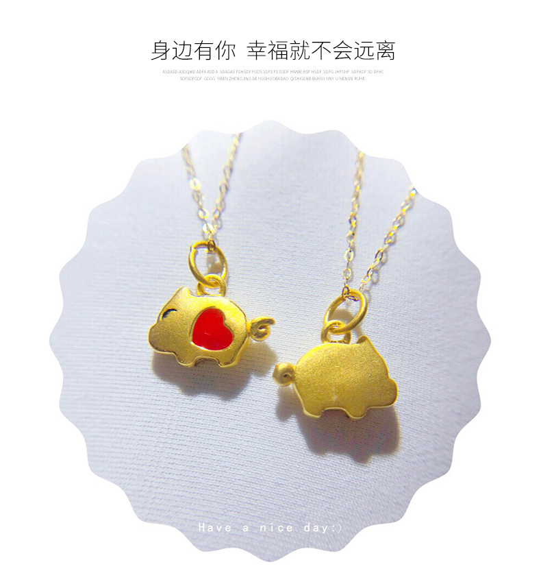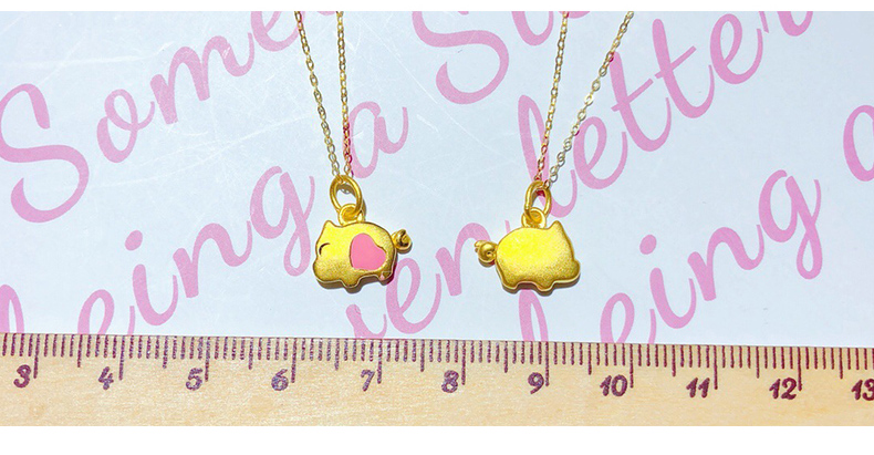 黄金项链女款硬足金爱心小猪吊坠生肖猪挂坠配18K金项链锁骨细链