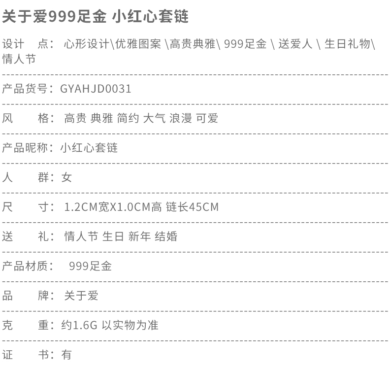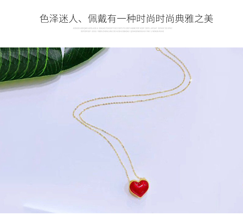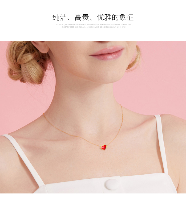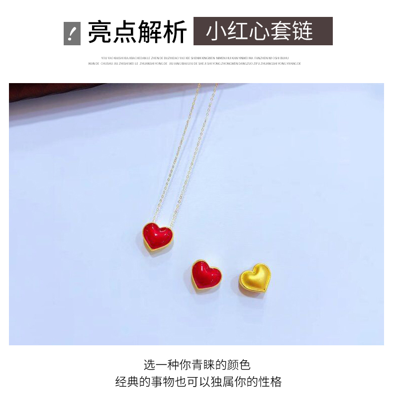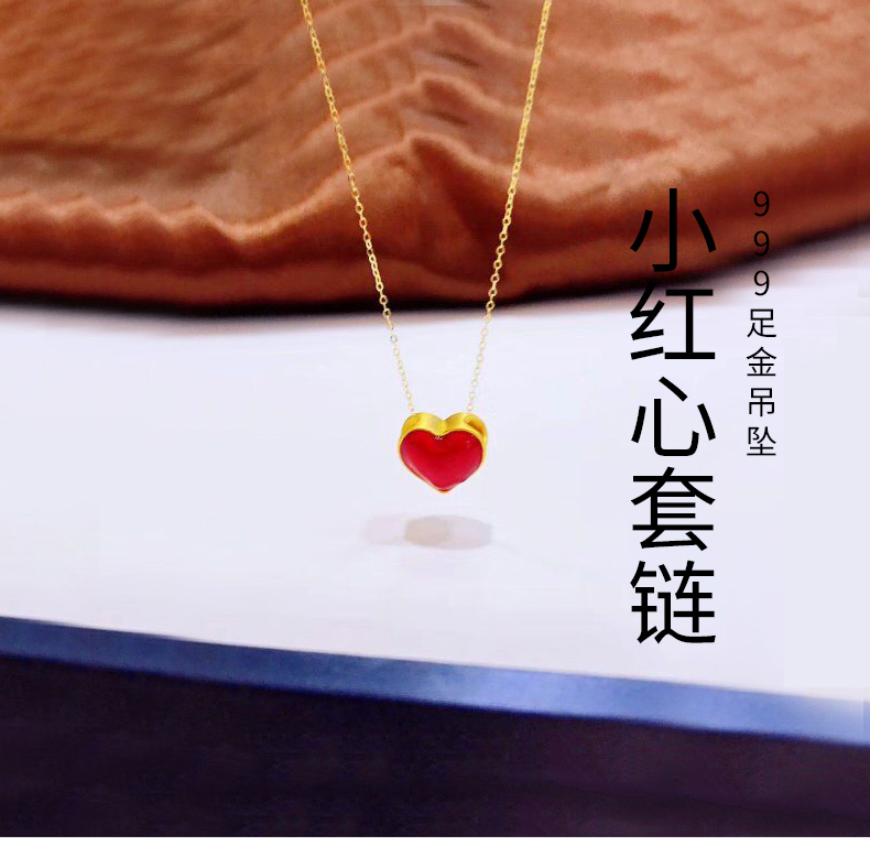 彩金项链女款999纯足金黄金红心形吊坠18K金锁骨套链细链首饰正品