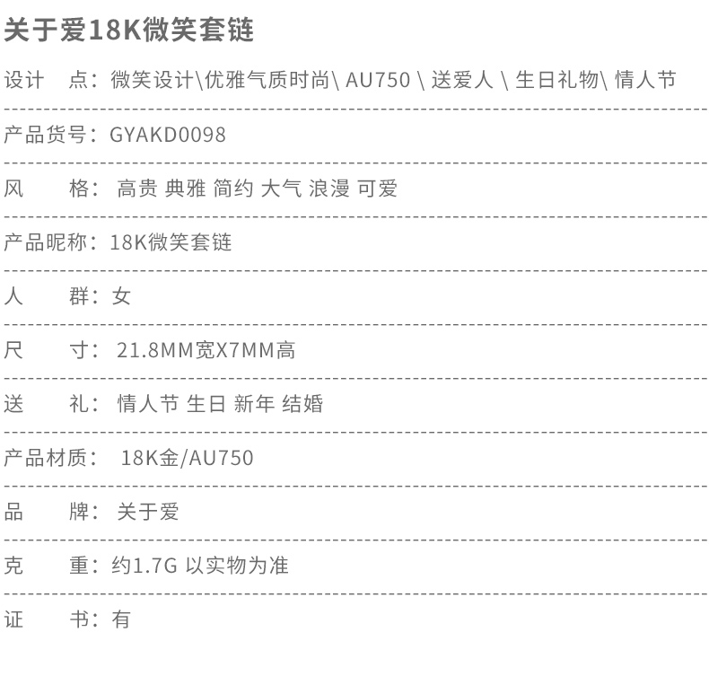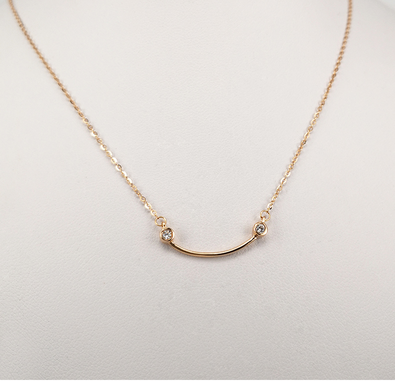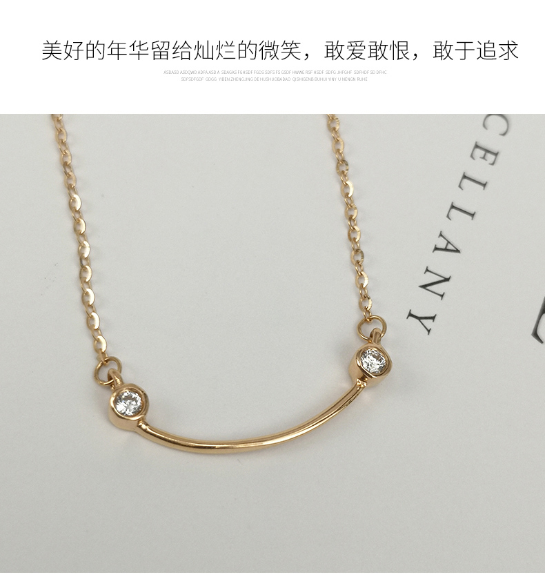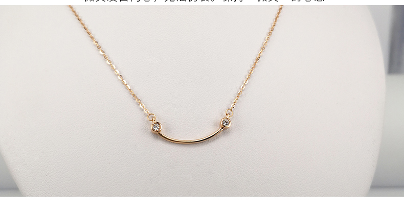 750彩金项链女18K黄金玫瑰金项链微笑吊坠锁骨套链细链短链颈饰品