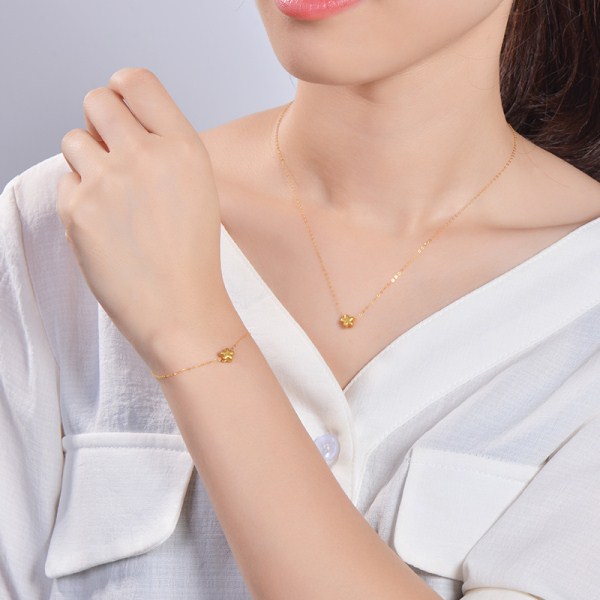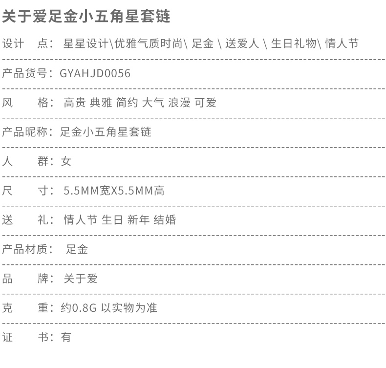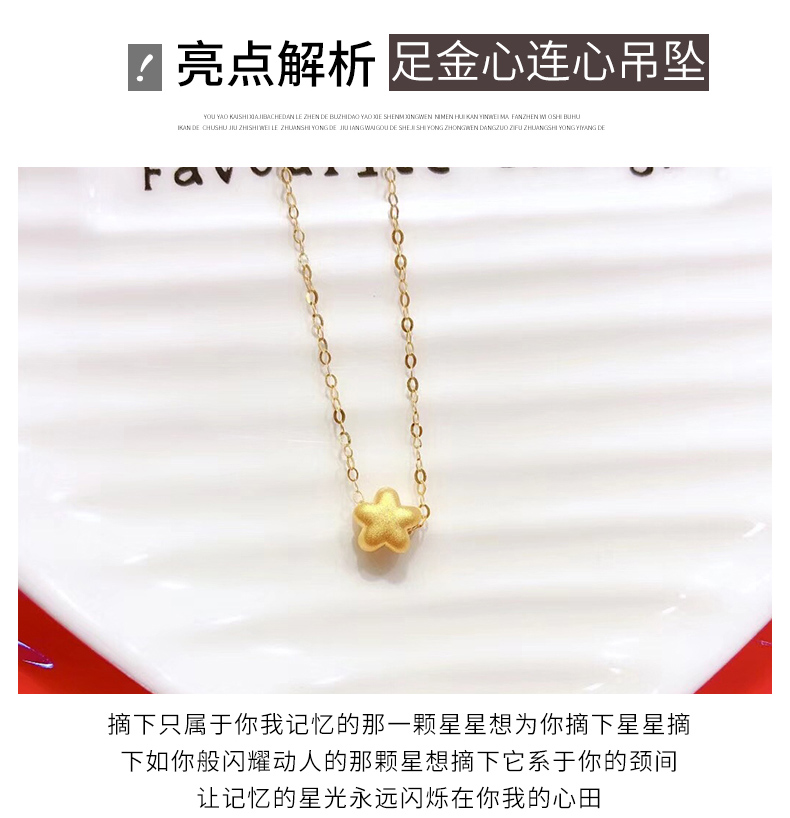 黄金项链女999足金吊坠3D硬金小五角星套链锁骨链正品首饰新款