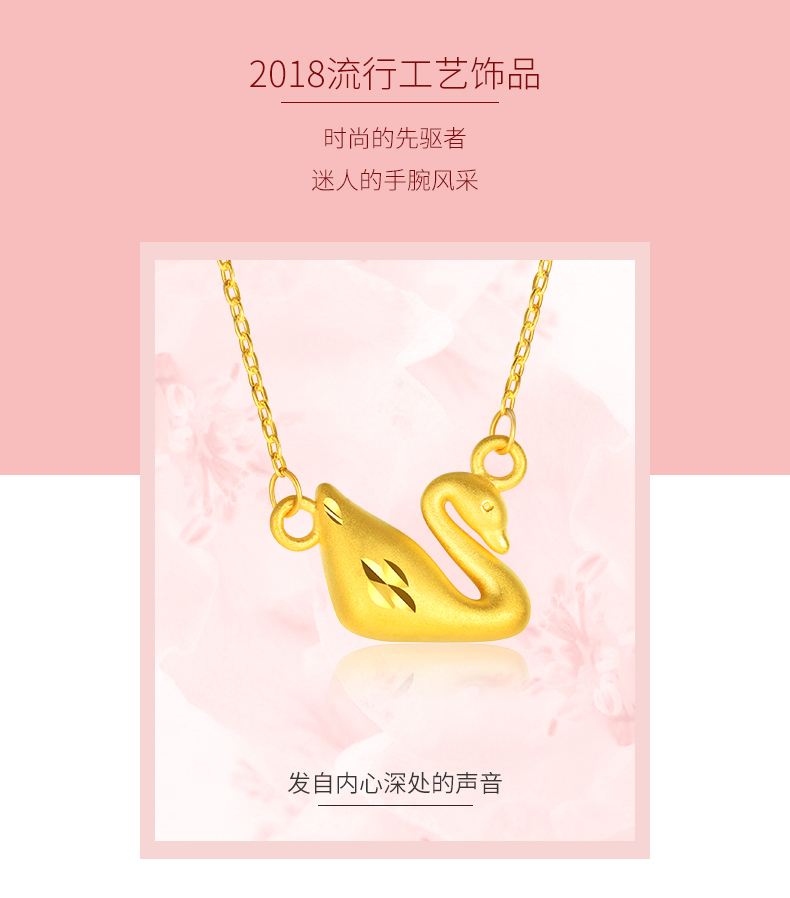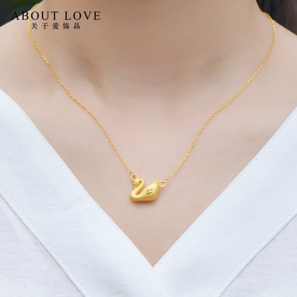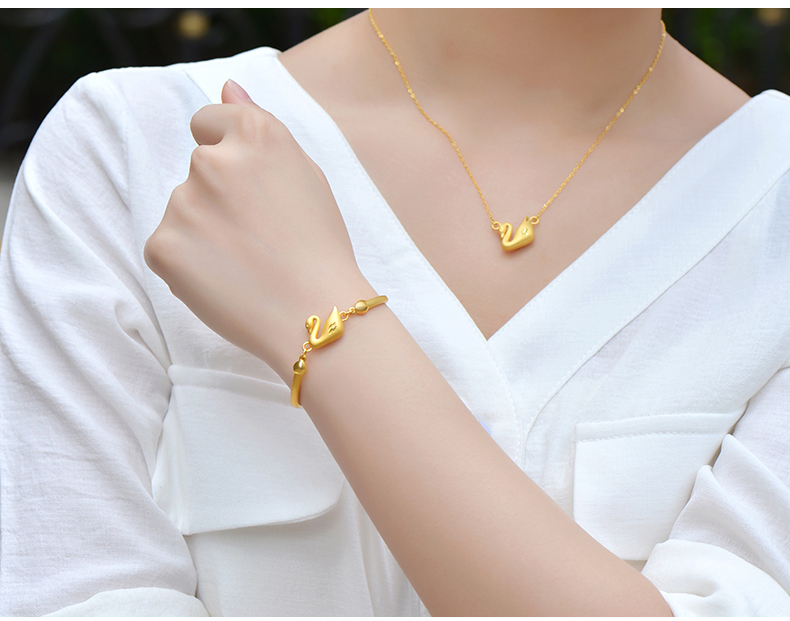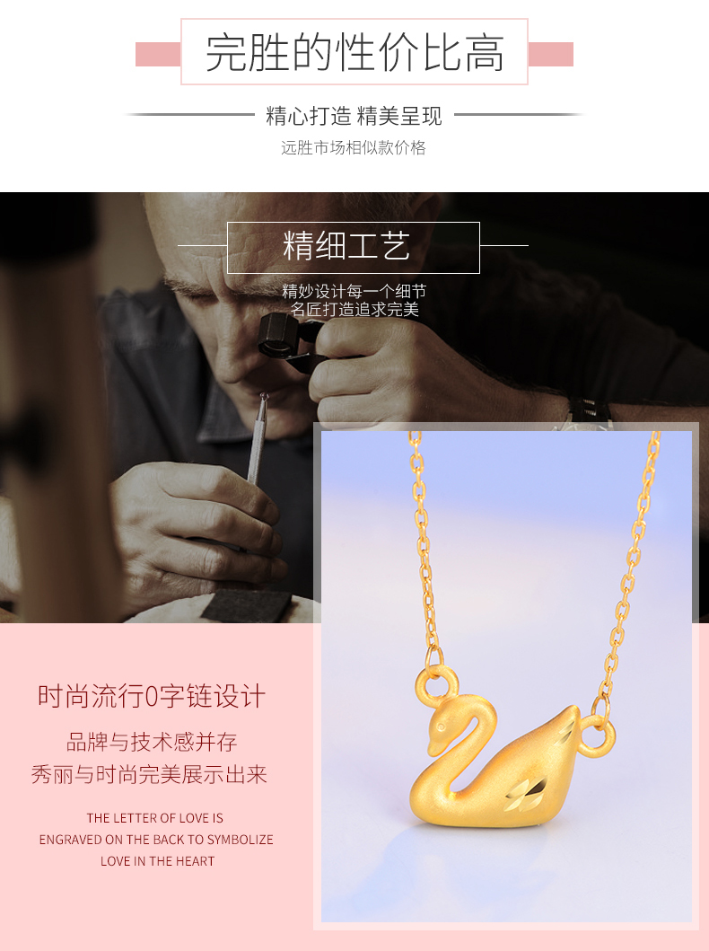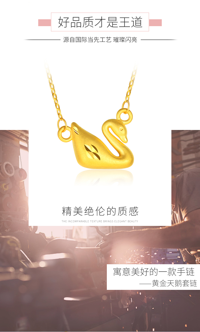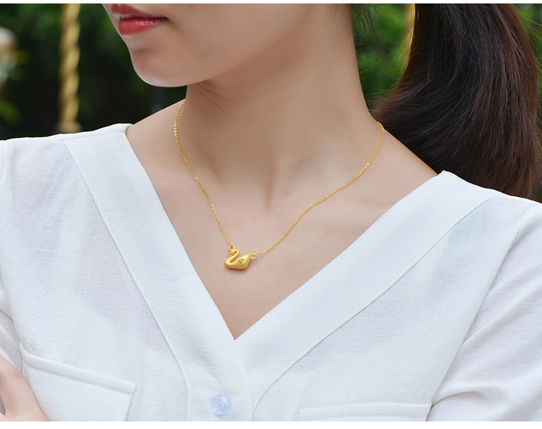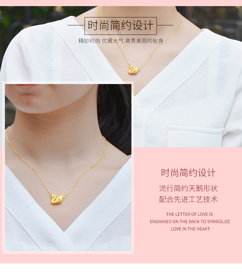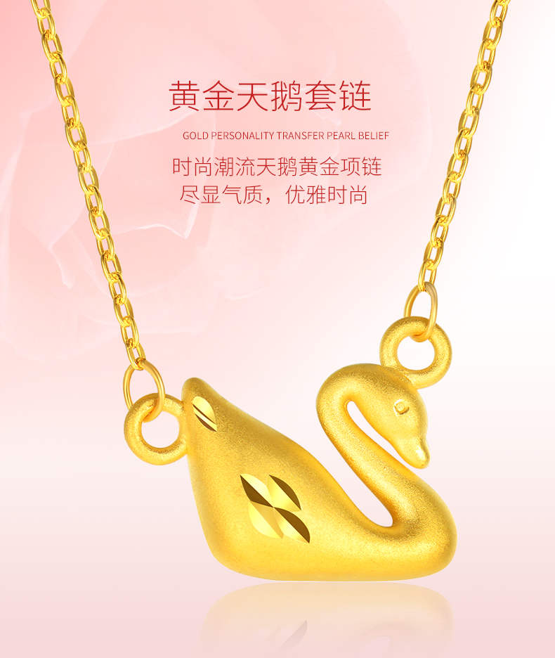 黄金项链女款999硬金足金天鹅吊坠套链锁骨链新款纯金首饰正品细
