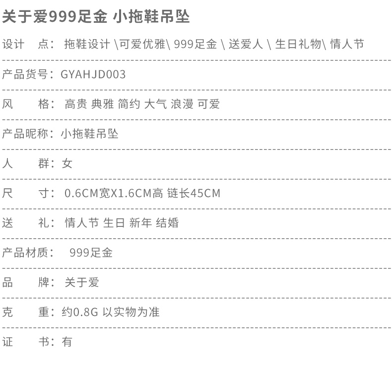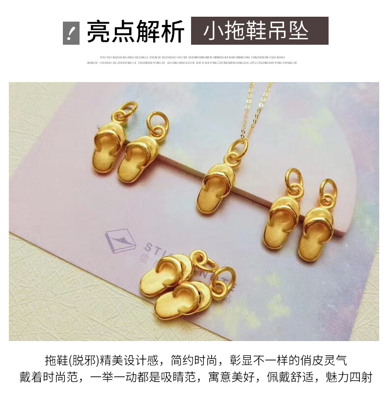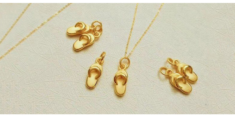 黄金项链女999足金拖鞋吊坠迷你小18K金锁骨链细饰品礼物送女朋友
