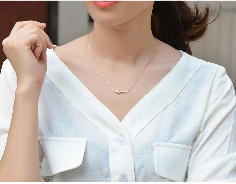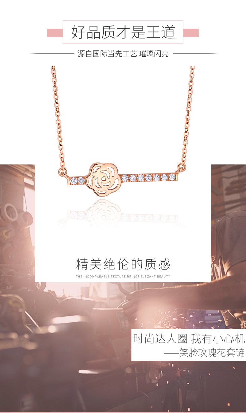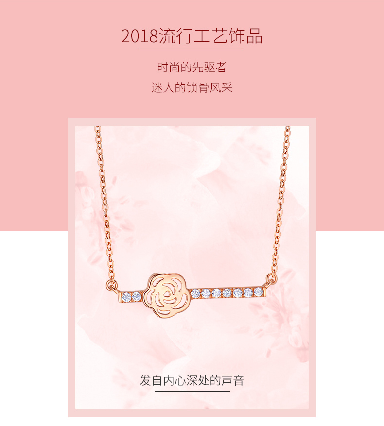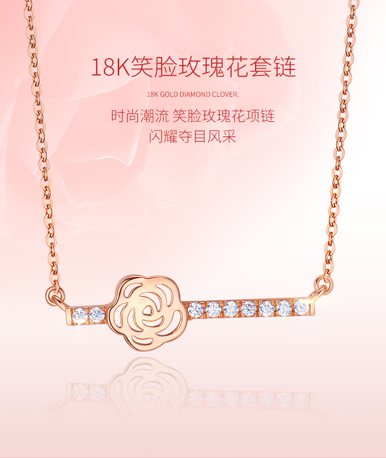 彩金项链女款正品18K玫瑰金笑脸玫瑰花吊坠au750套链O字锁骨链