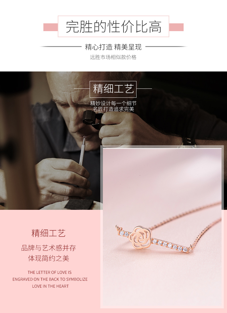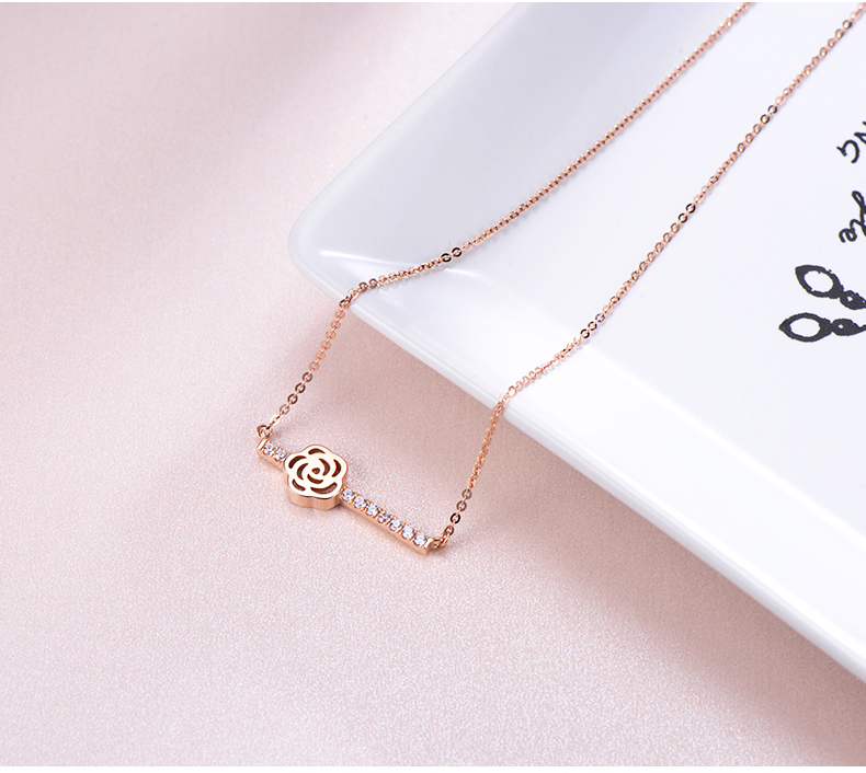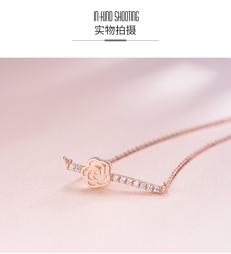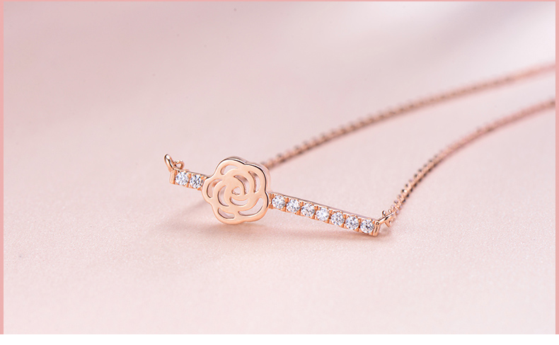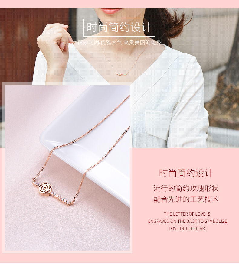 彩金项链女款正品18K玫瑰金笑脸玫瑰花吊坠au750套链O字锁骨链
