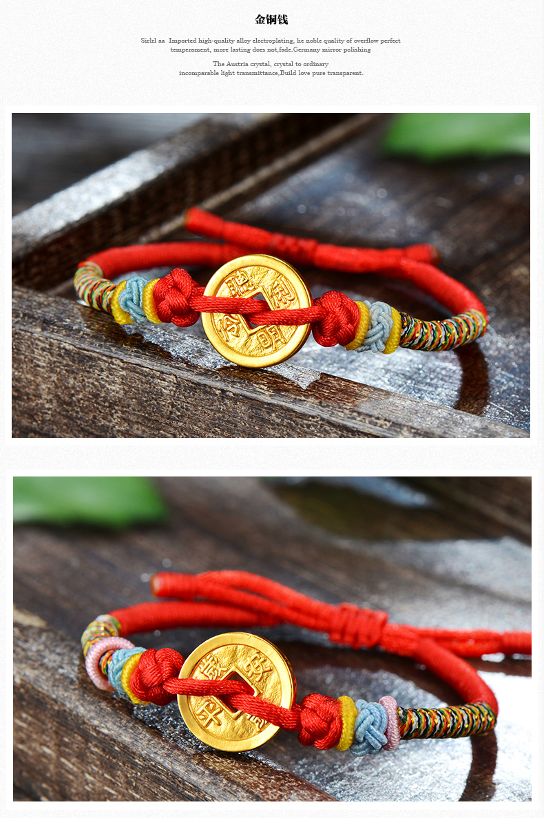 关于爱足金 红绳黄金铜钱红绳手链 | |