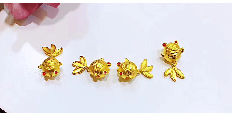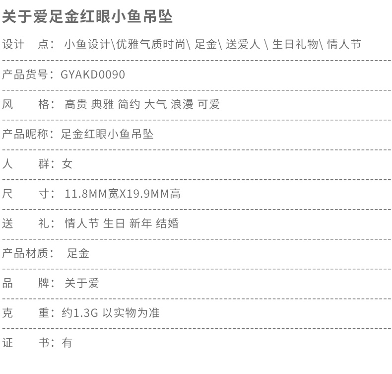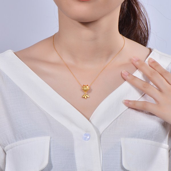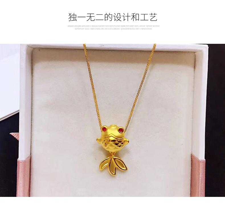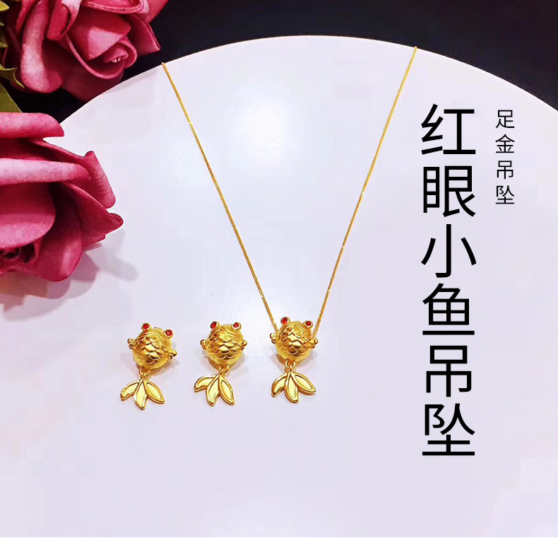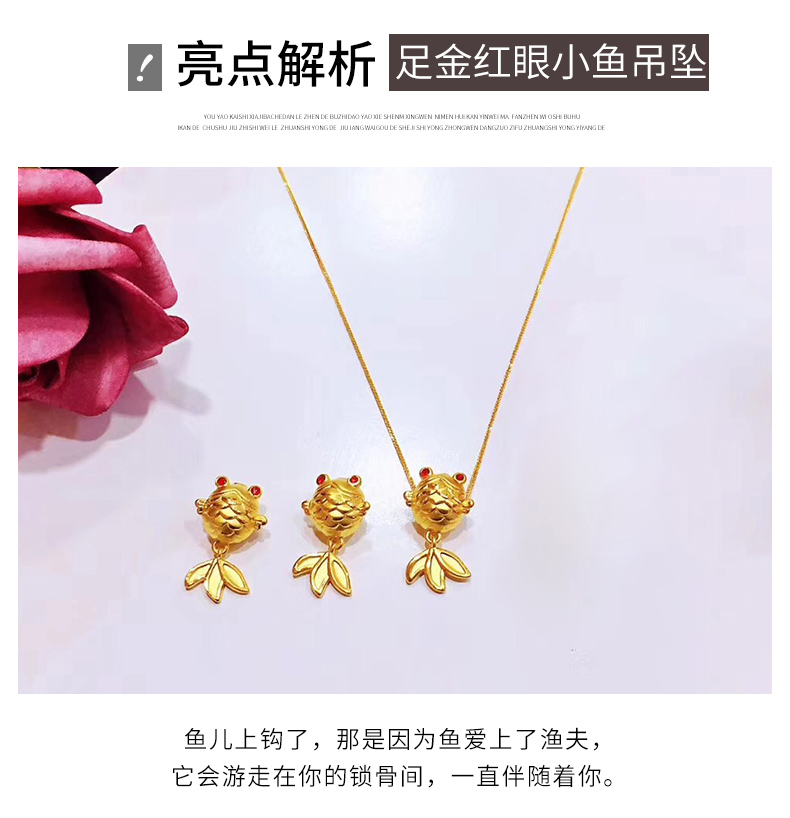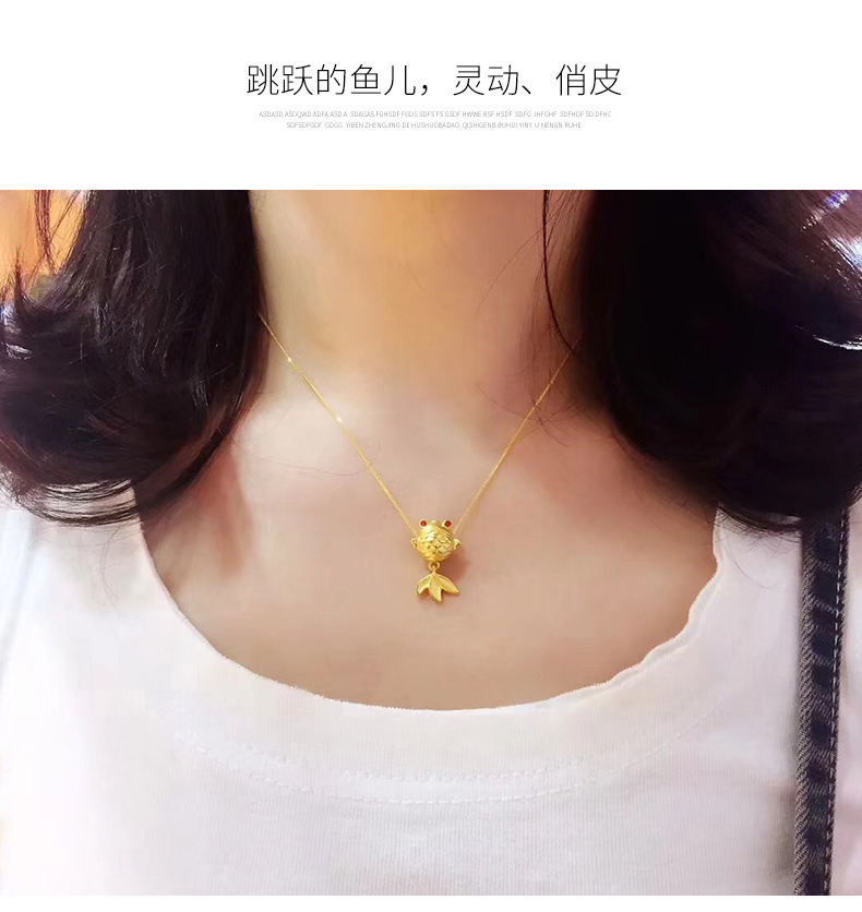 足金黄金项链女款红眼小金鱼吊坠3D硬金新款18K金锁骨链正品首饰