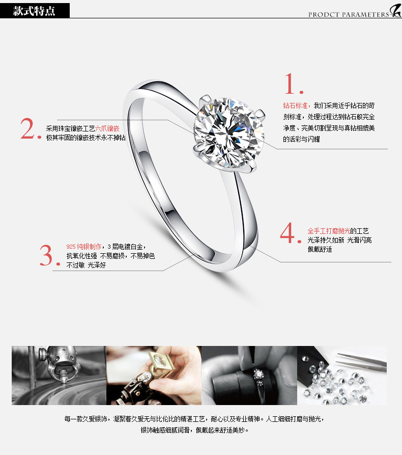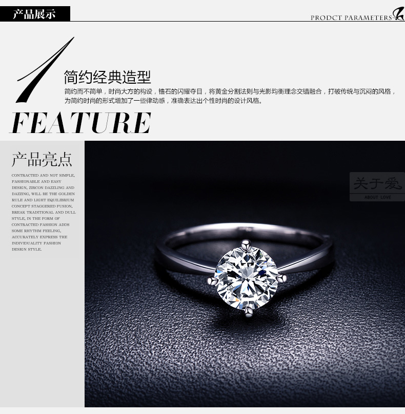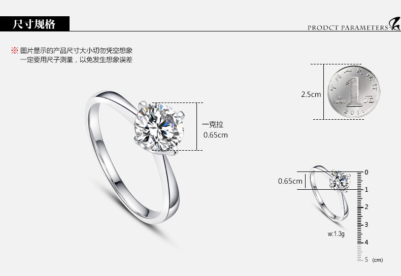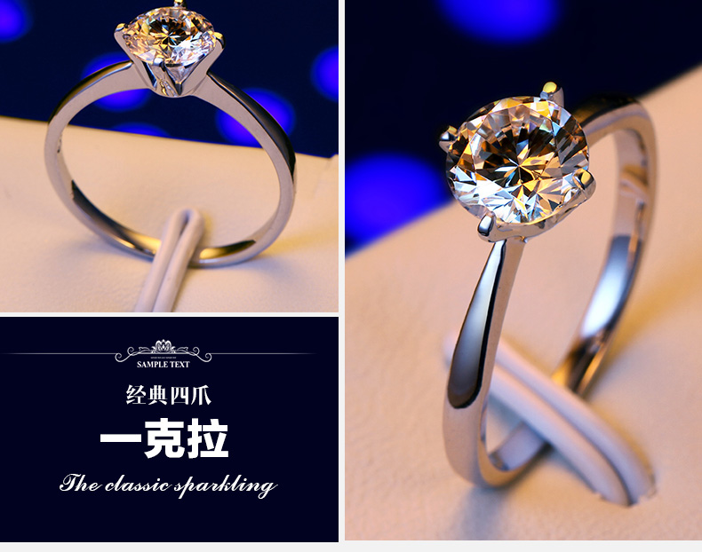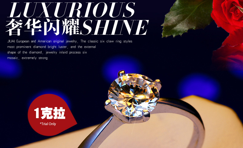 一克拉仿真钻石 情人节送女友 求婚戒指