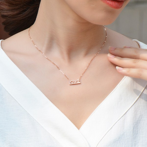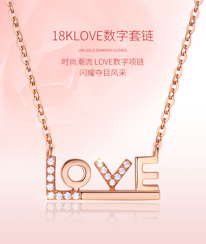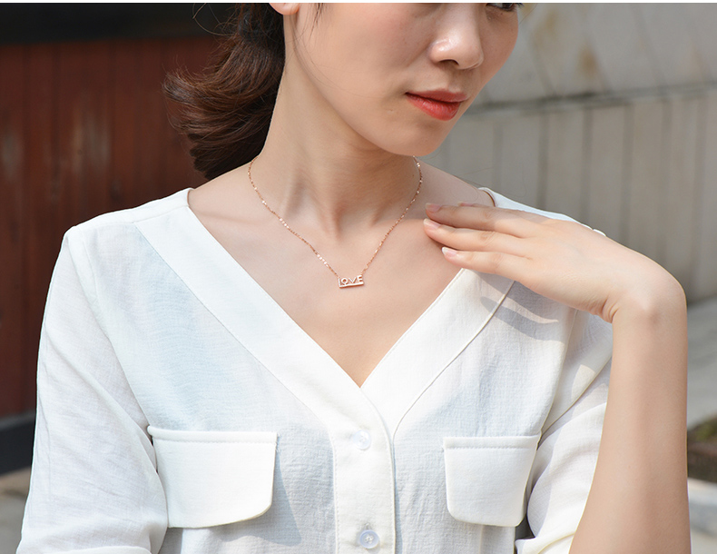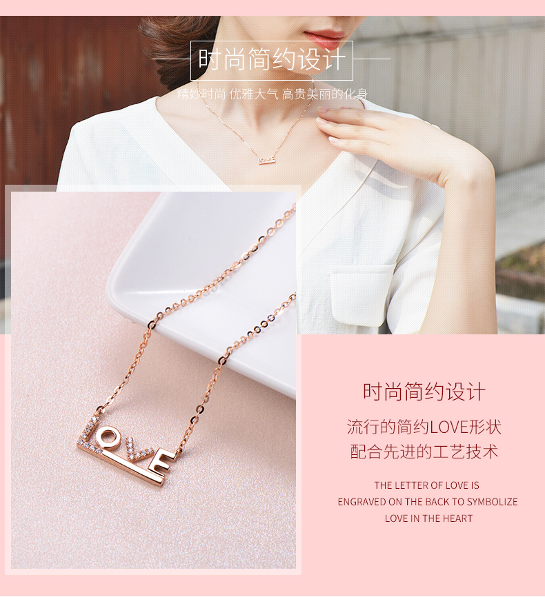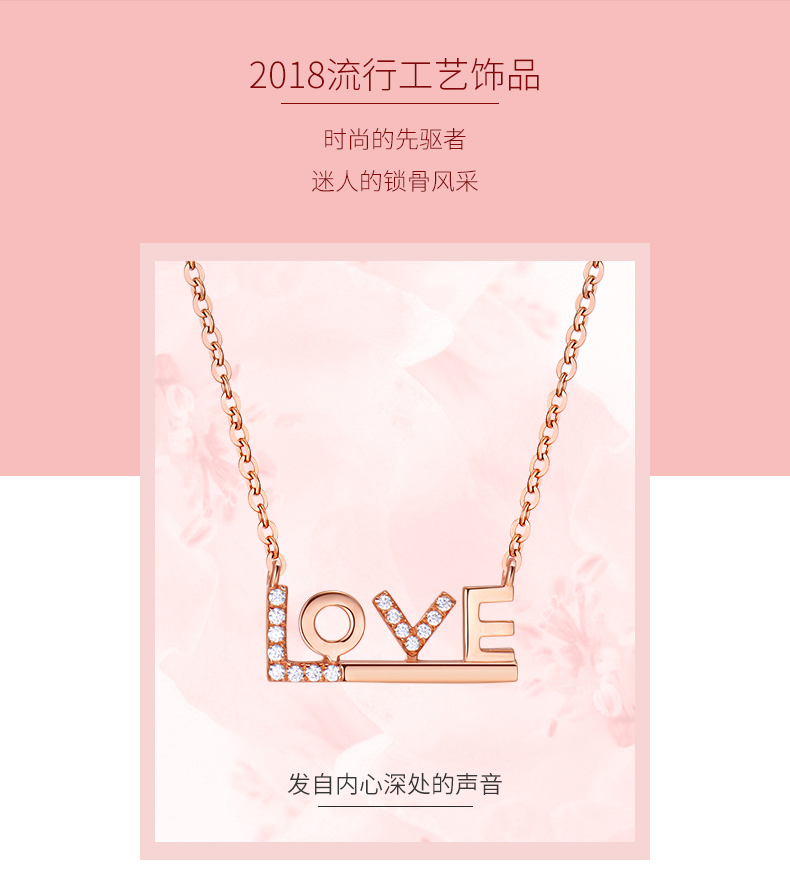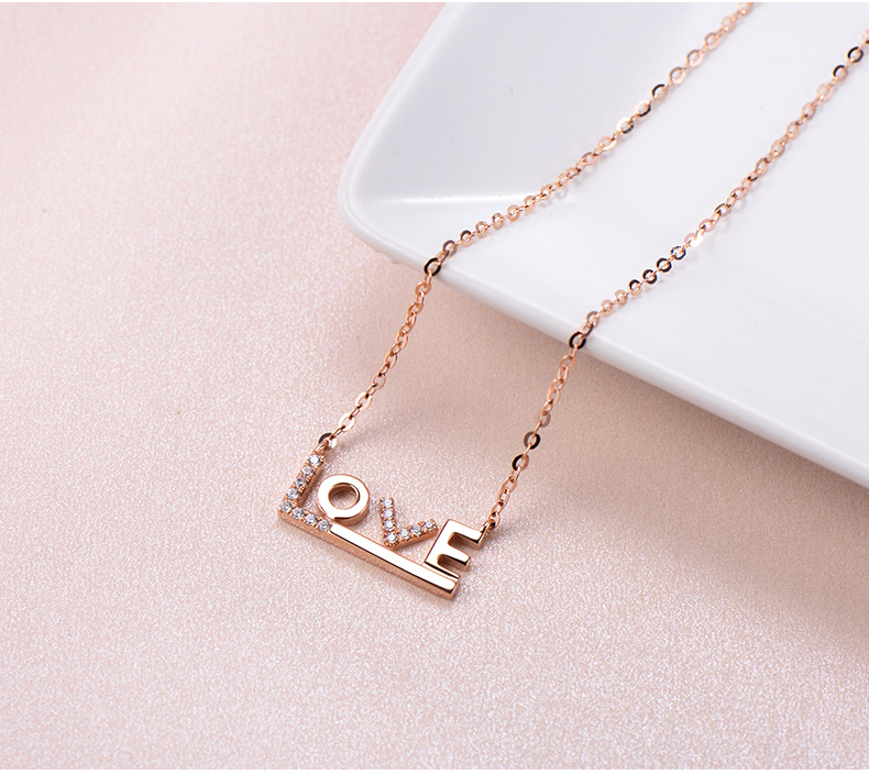 18K金项链女彩金玫瑰金Love吊坠K金套链750锁骨链细链素链可调节