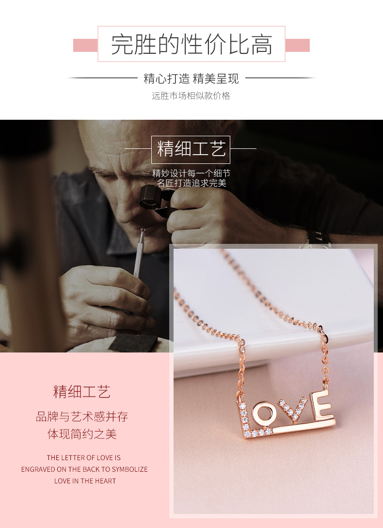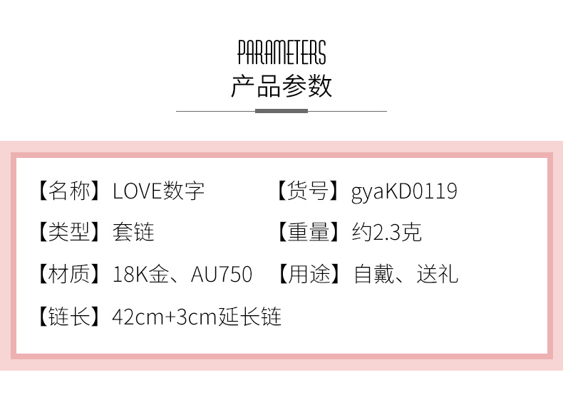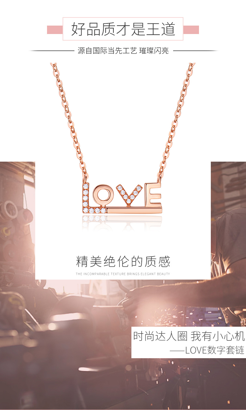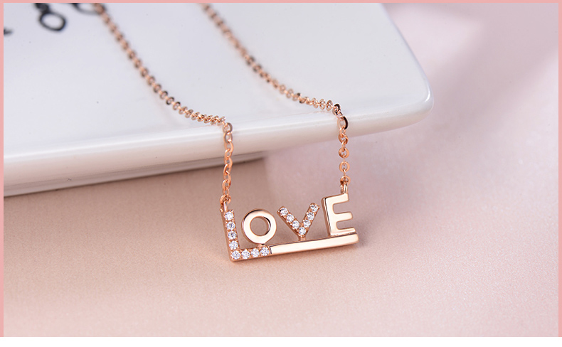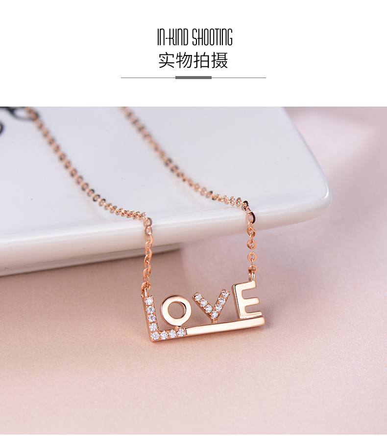 18K金项链女彩金玫瑰金Love吊坠K金套链750锁骨链细链素链可调节