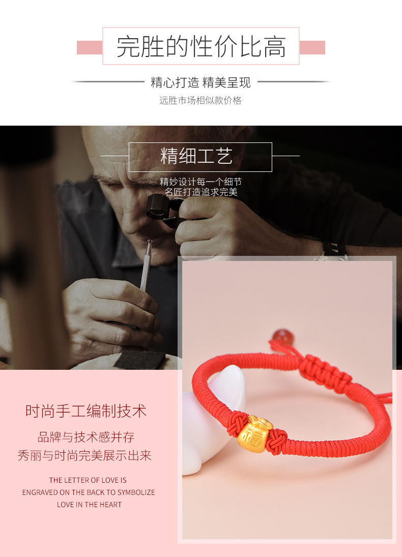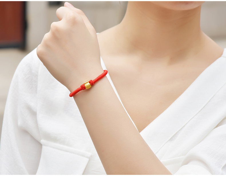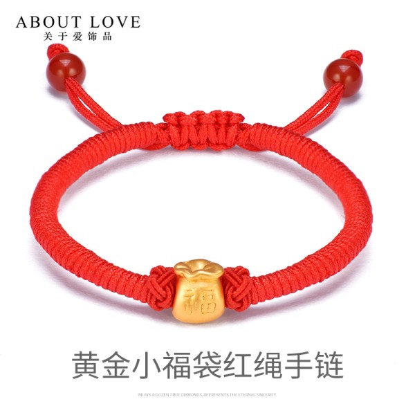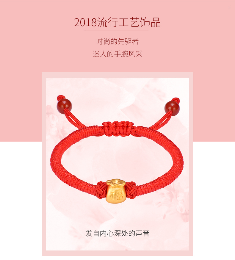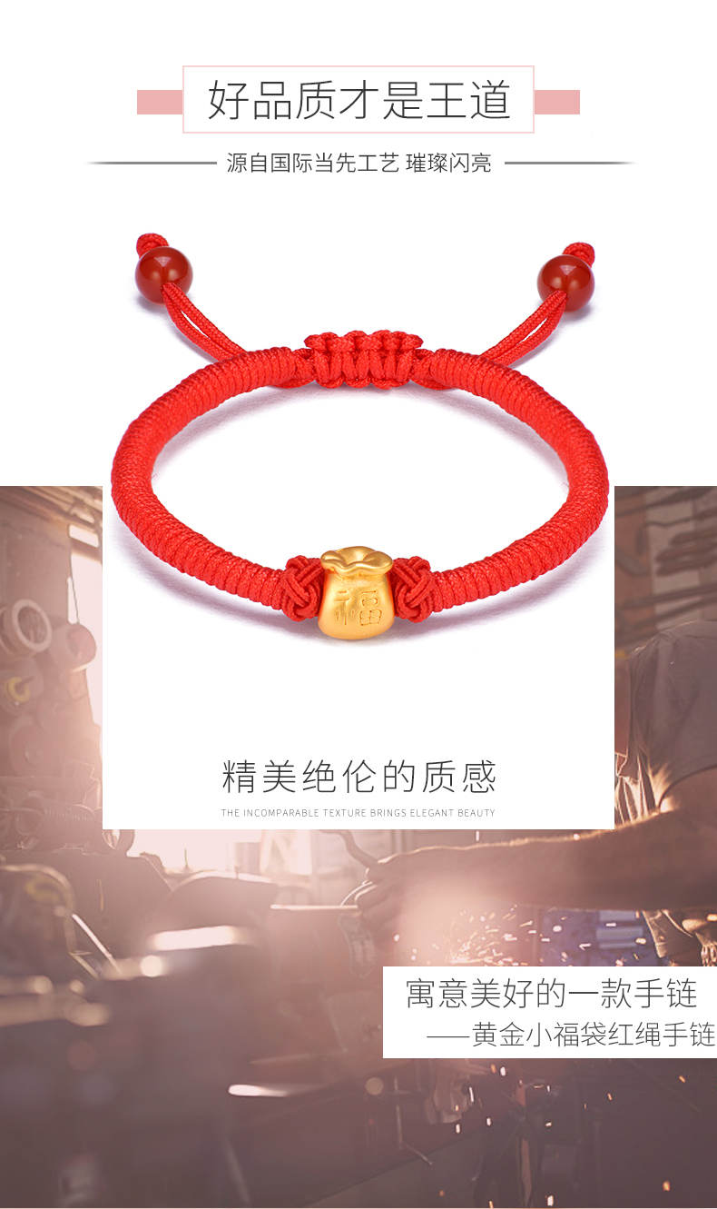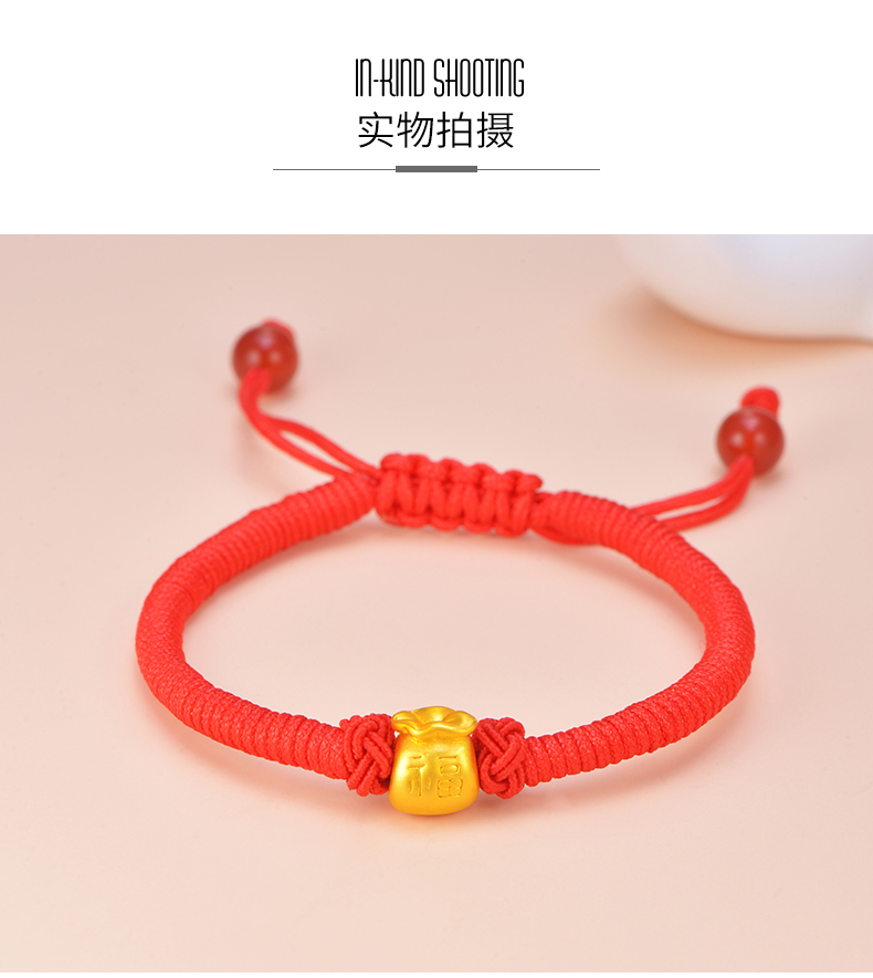 黄金手链999足金福袋3D硬金手工编织红绳亲子款宝宝婴儿节日礼物
