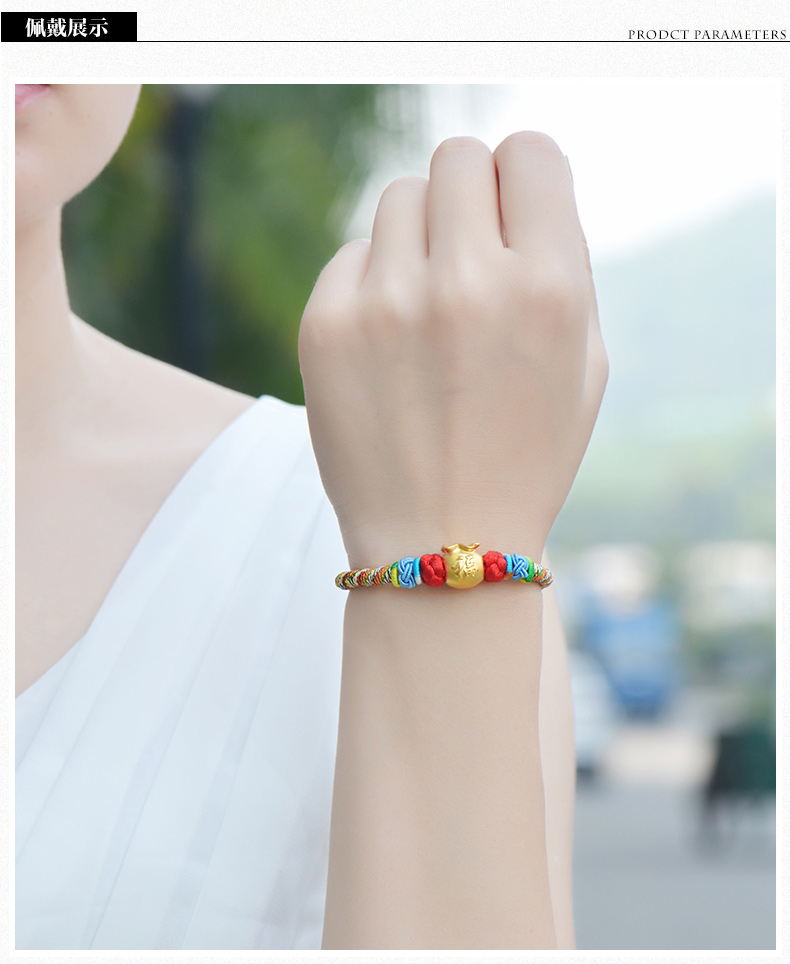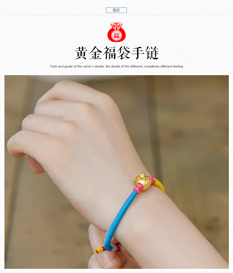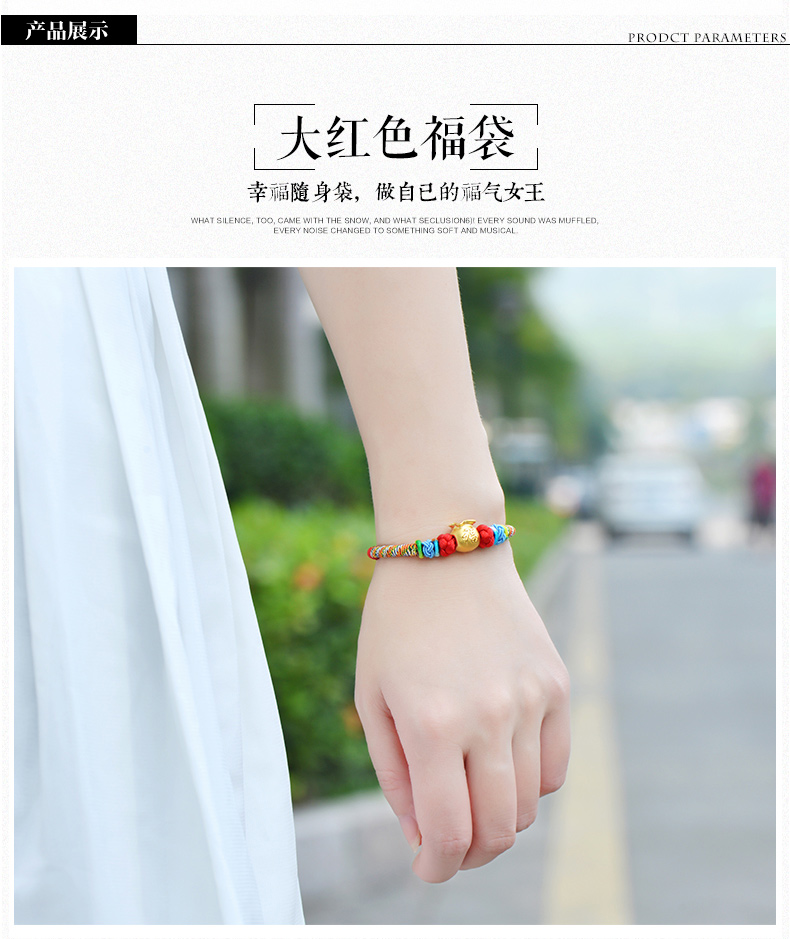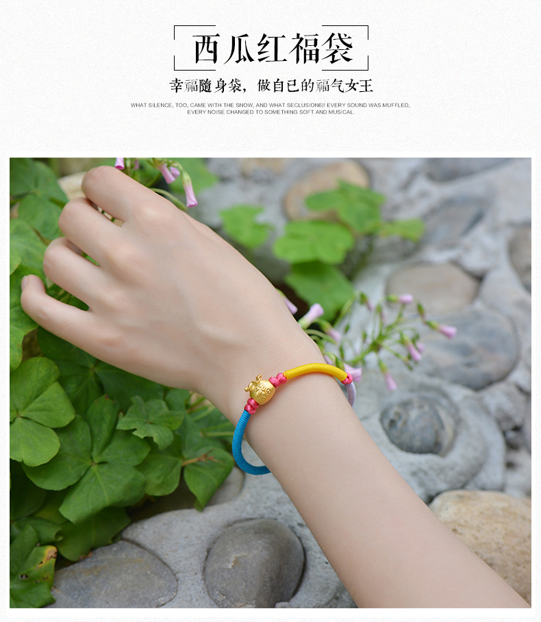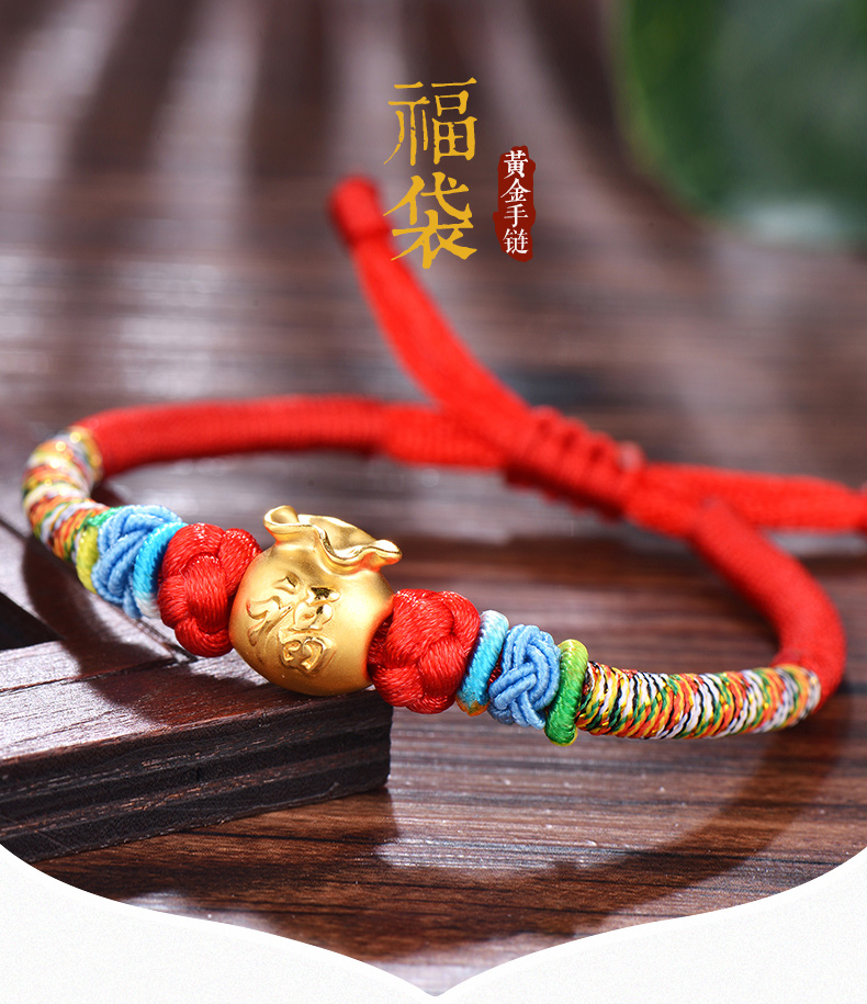 设计点:福袋红绳足金手链 高贵典雅 足金 送爱人 新年礼物 情人 |