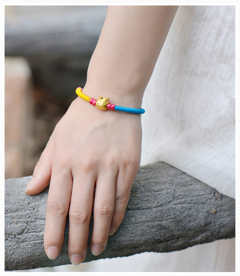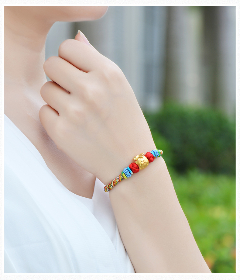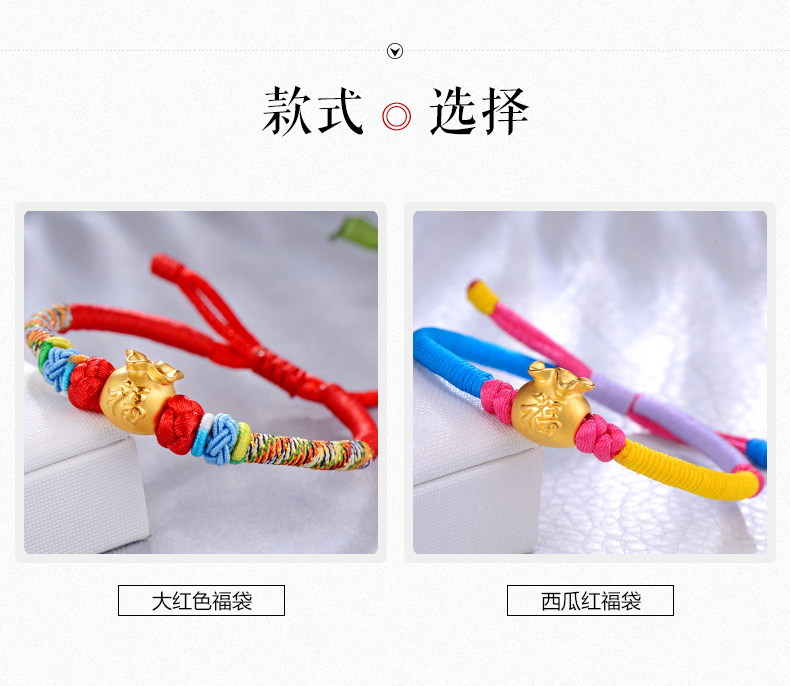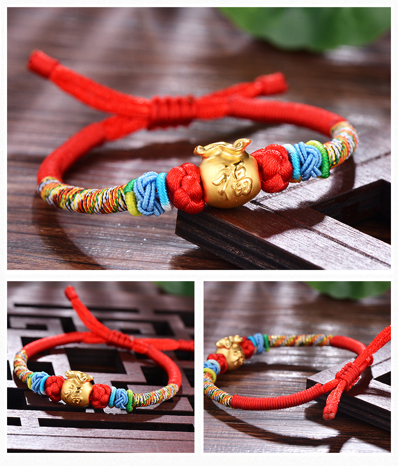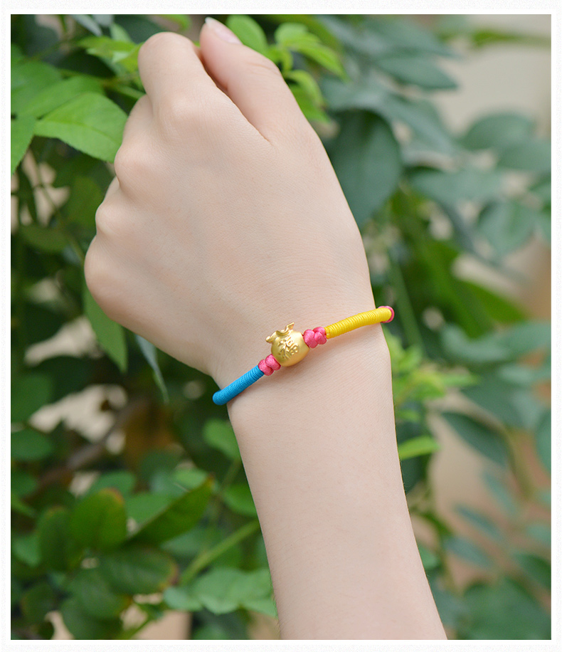 设计点:福袋红绳足金手链 高贵典雅 足金 送爱人 新年礼物 情人 |