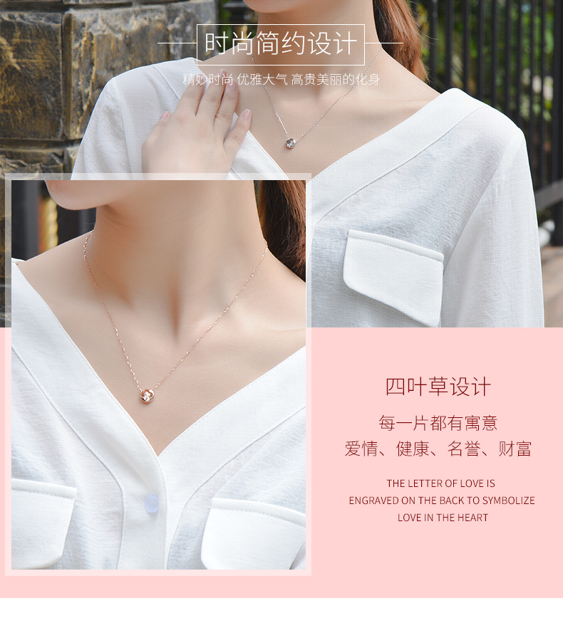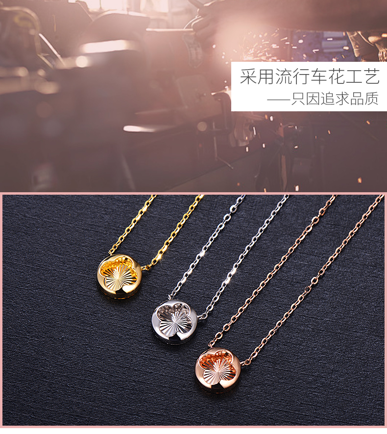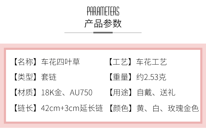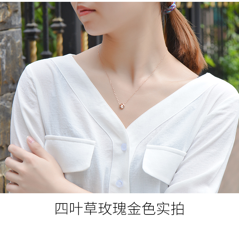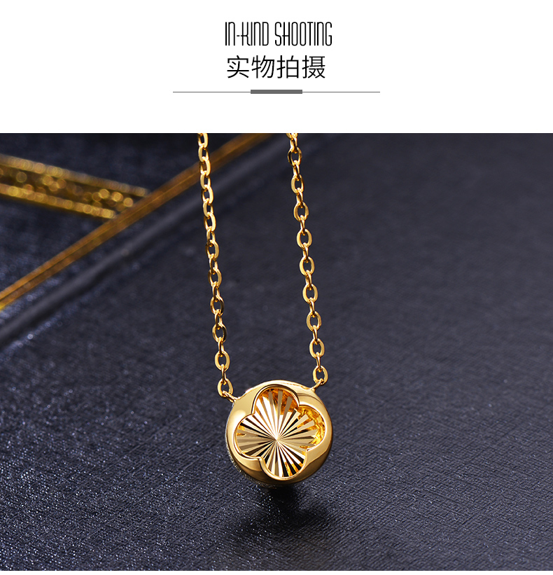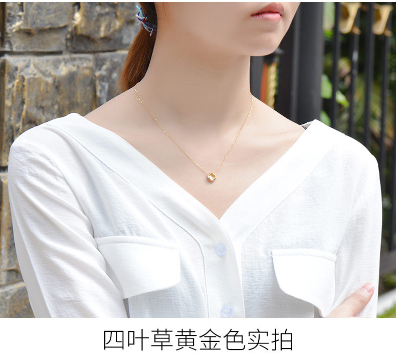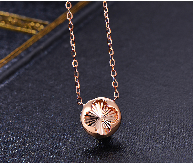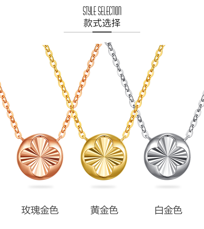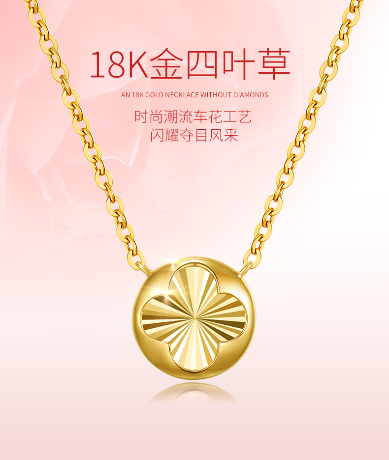 小四叶草彩金项链女18K素黄金玫瑰金白au750吊坠锁骨o字链细套链