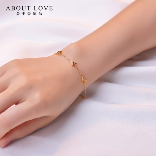 彩金手链女18k金手链AU750字母love手饰细款首饰金手镯送女友礼物