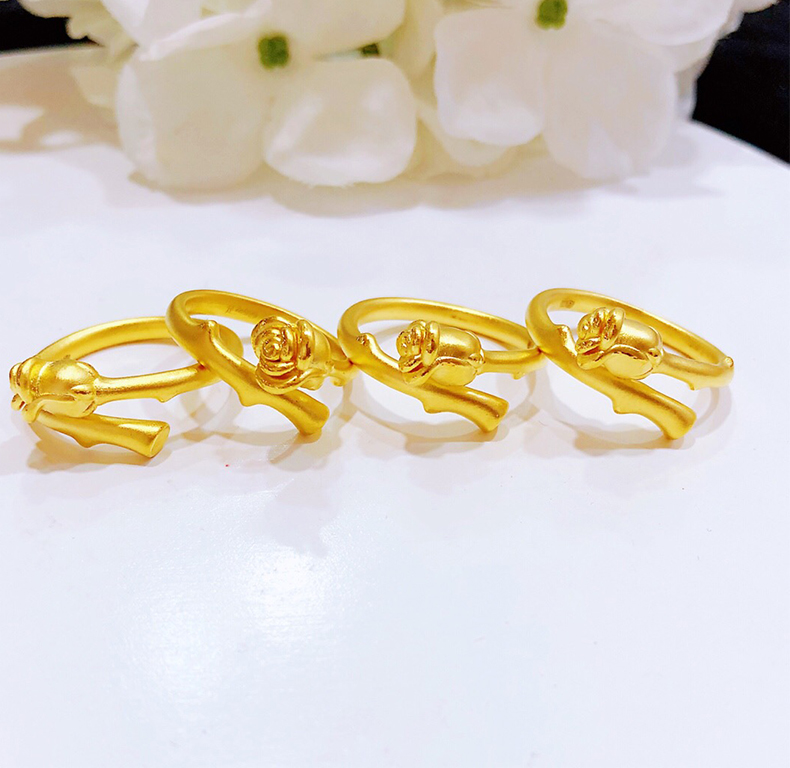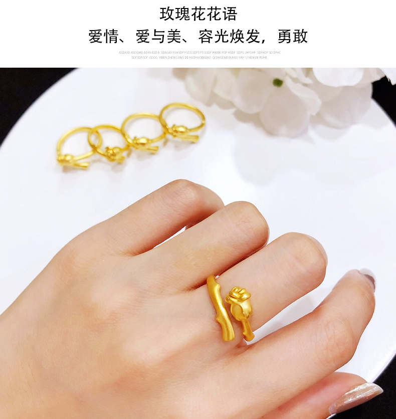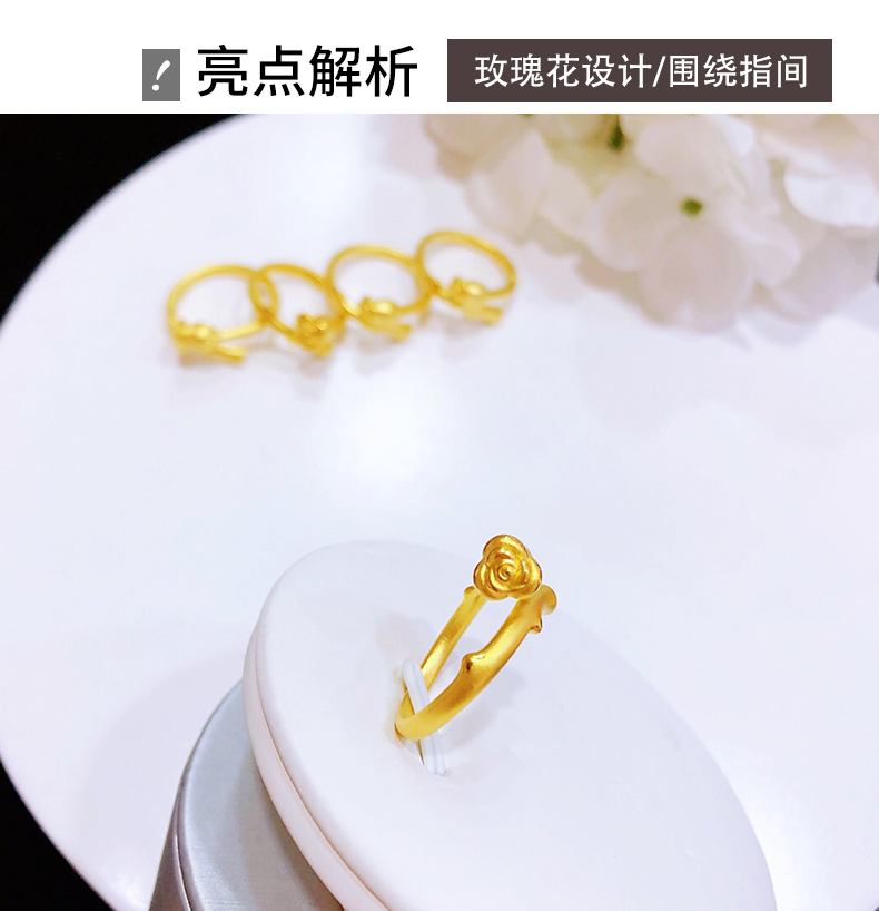 关于愛黄金戒指女新款999足金3D硬金玫瑰花转运珠戒指珠宝首饰
