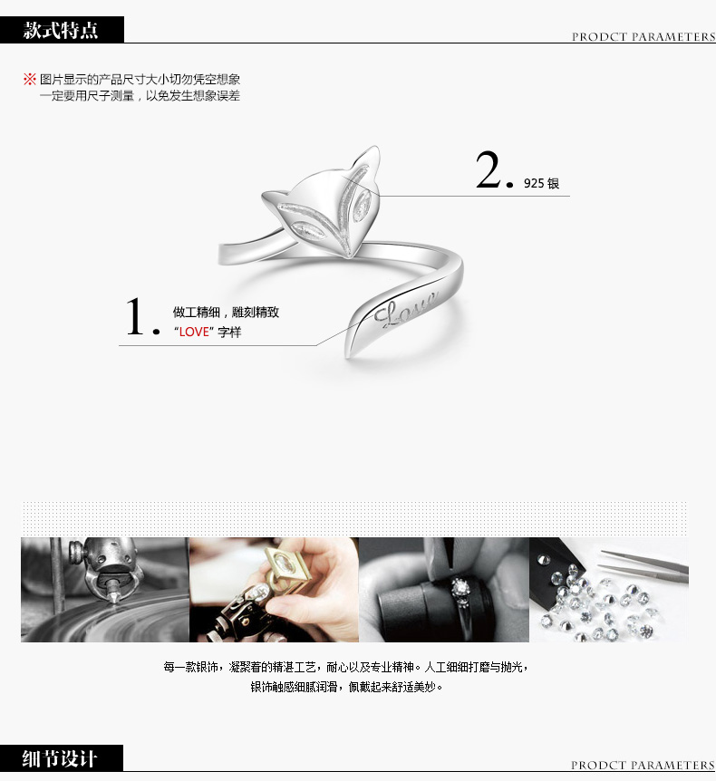 关于爱925银戒指女 火狐狸复古戒指 韩版潮人银指环女尾戒情人节 |