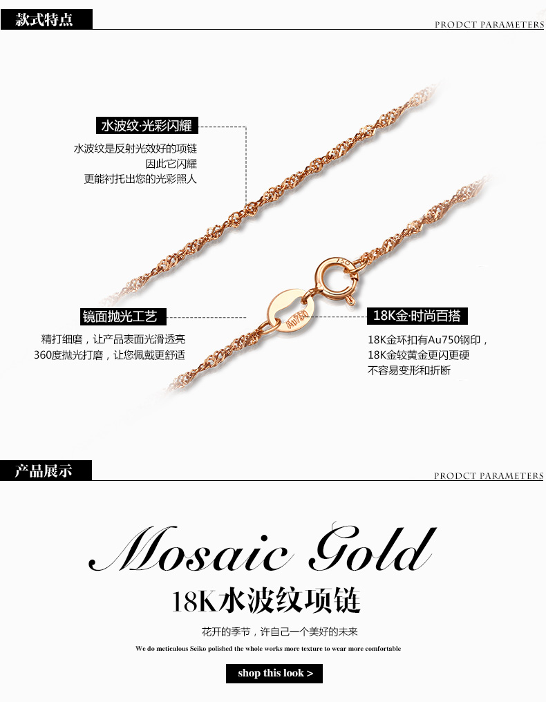设计点: 18K金项链 唯美18K金 高贵典雅 日常必备 水波链 O字链 送爱人 情人节 | |