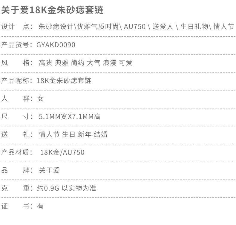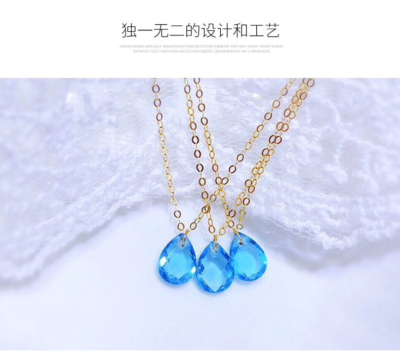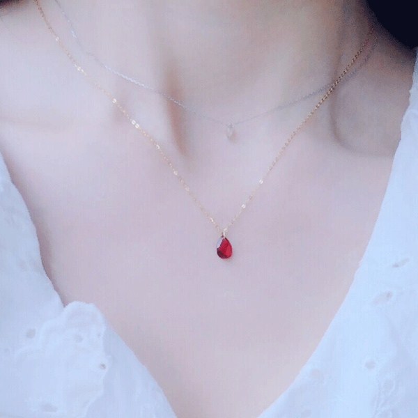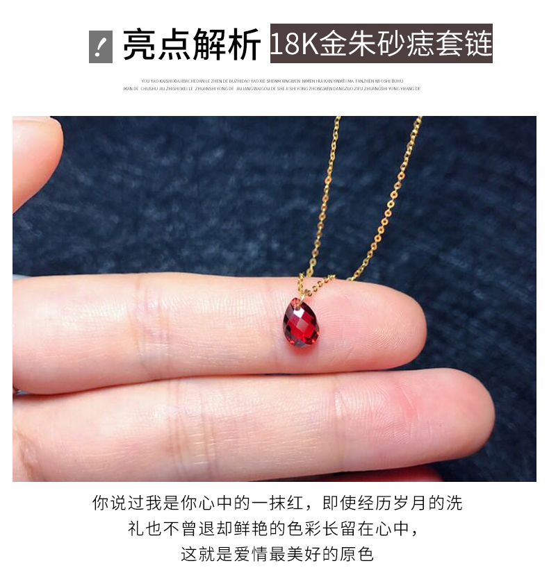 18K金项链女彩金项链黄金色镶嵌石榴石小吊坠锁骨链o项链细款正品