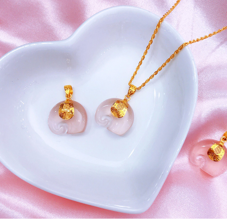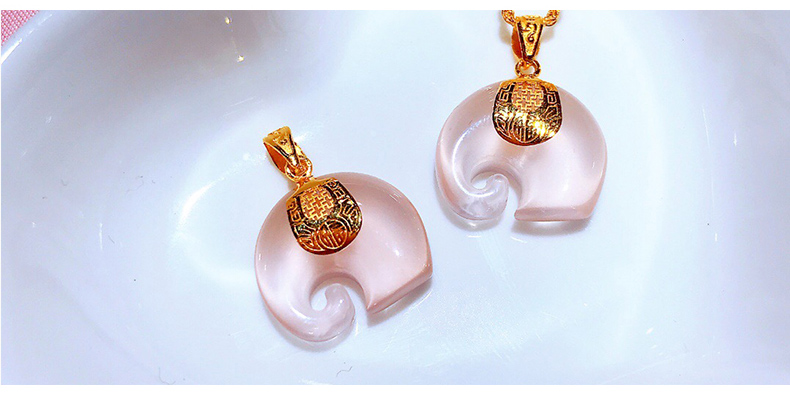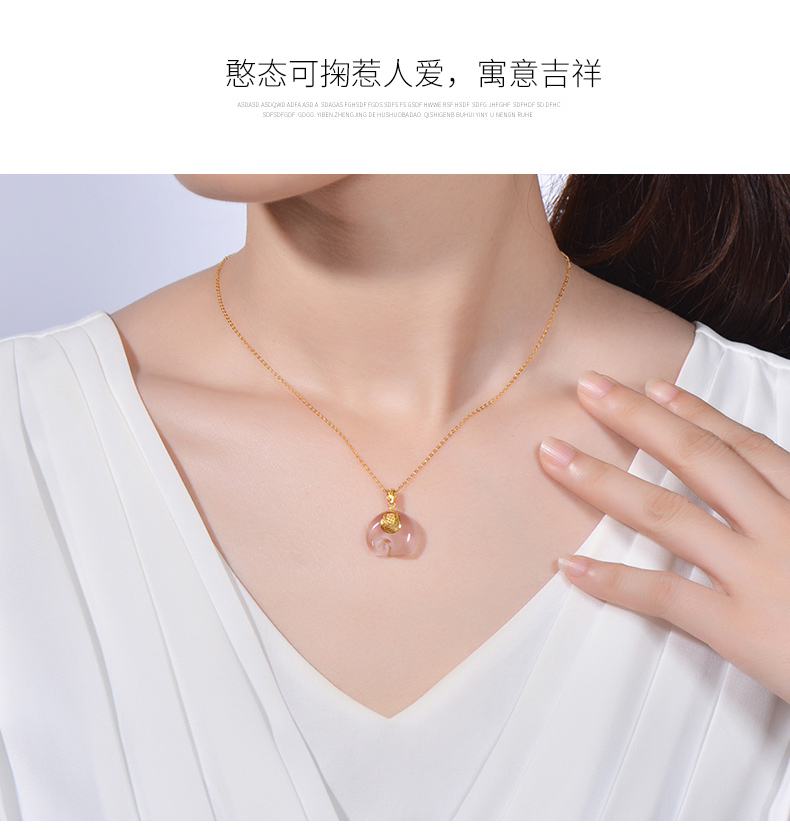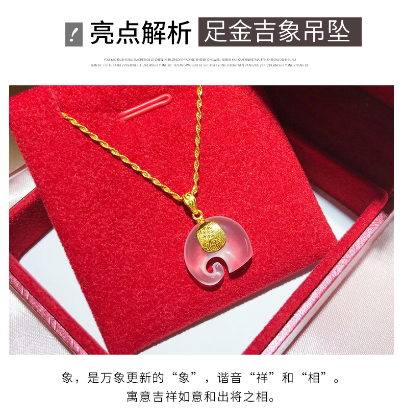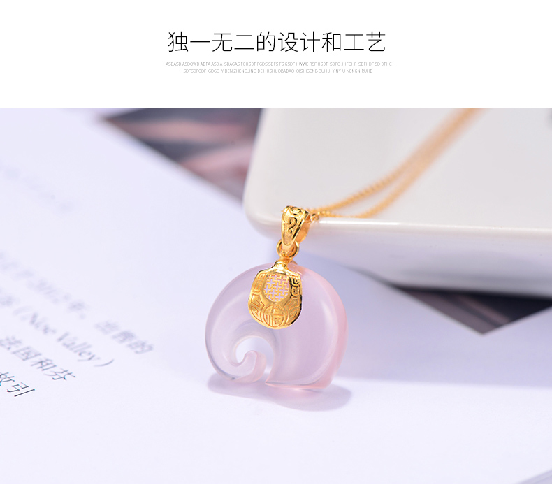 黄金吊坠新款纯金项链女款粉色芙蓉石吉象吊坠au750K金锁骨链正品