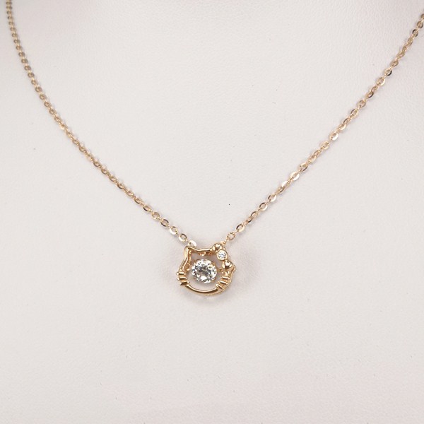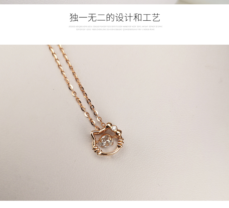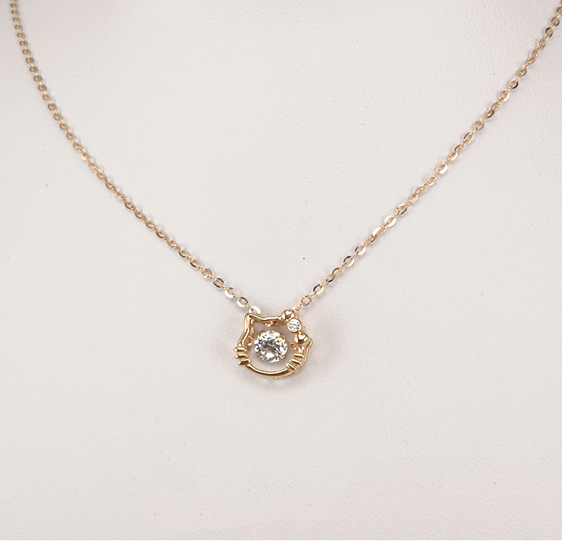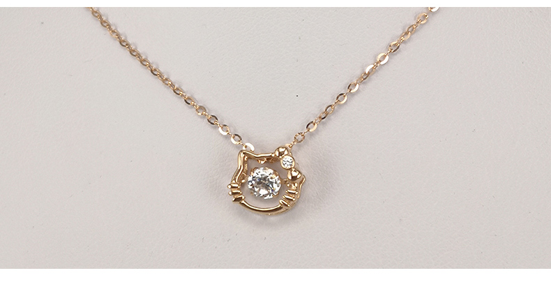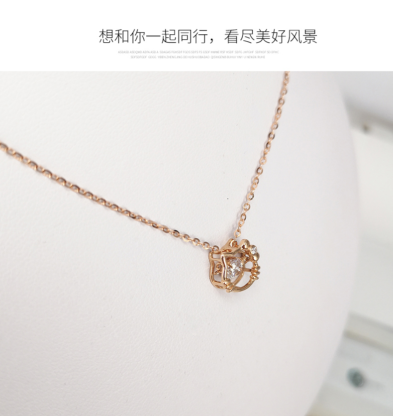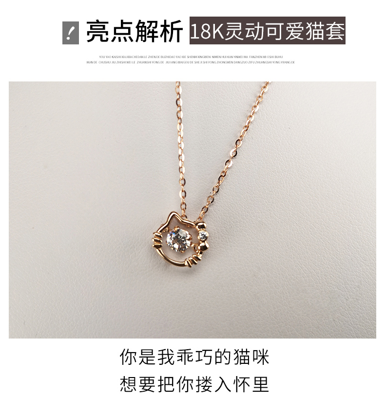 18K金项链彩金玫瑰金可爱猫咪吊坠镂空女款750K金套链锁骨链正品