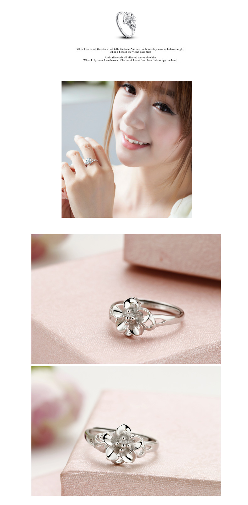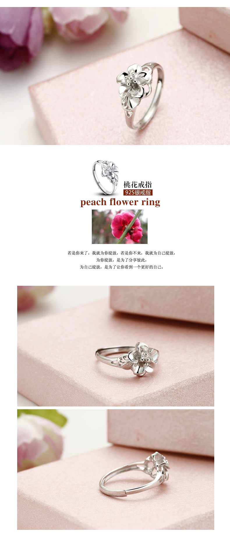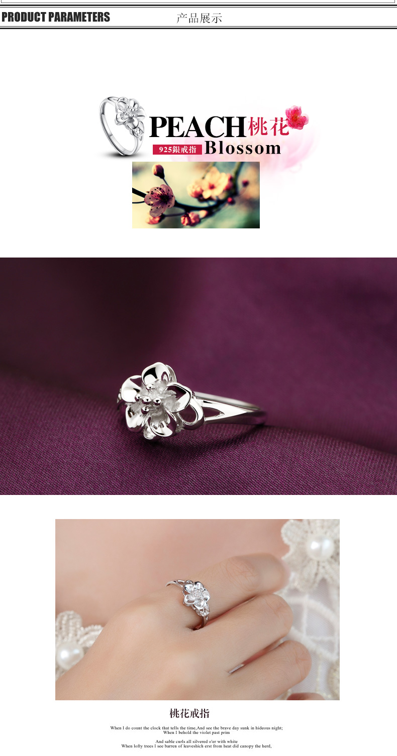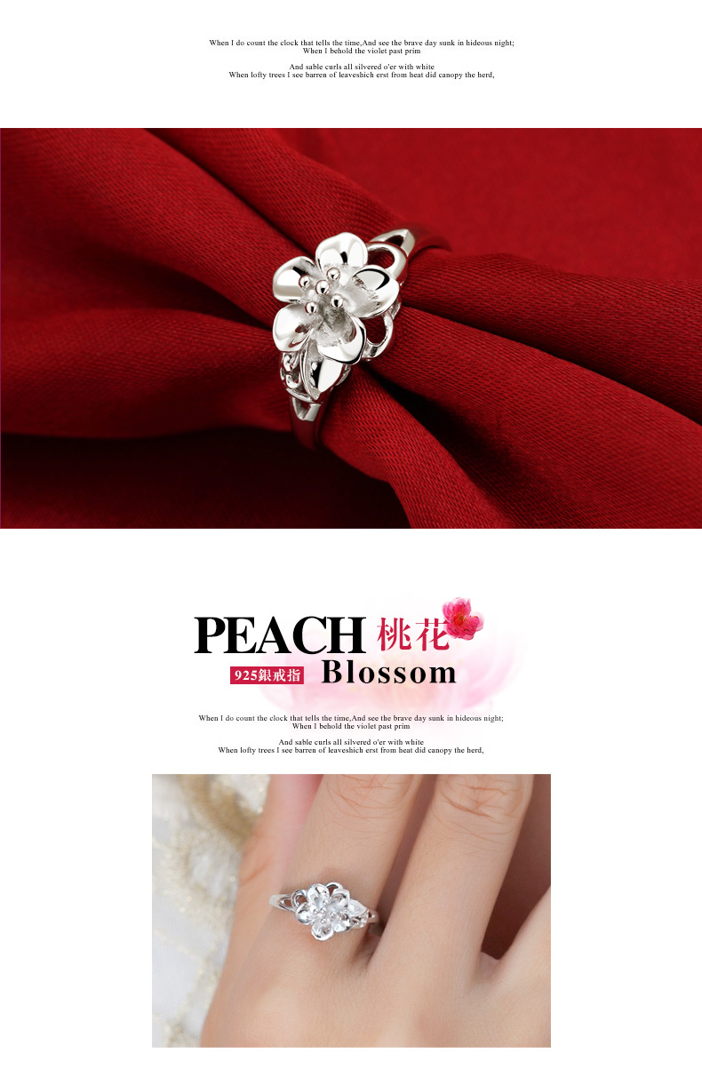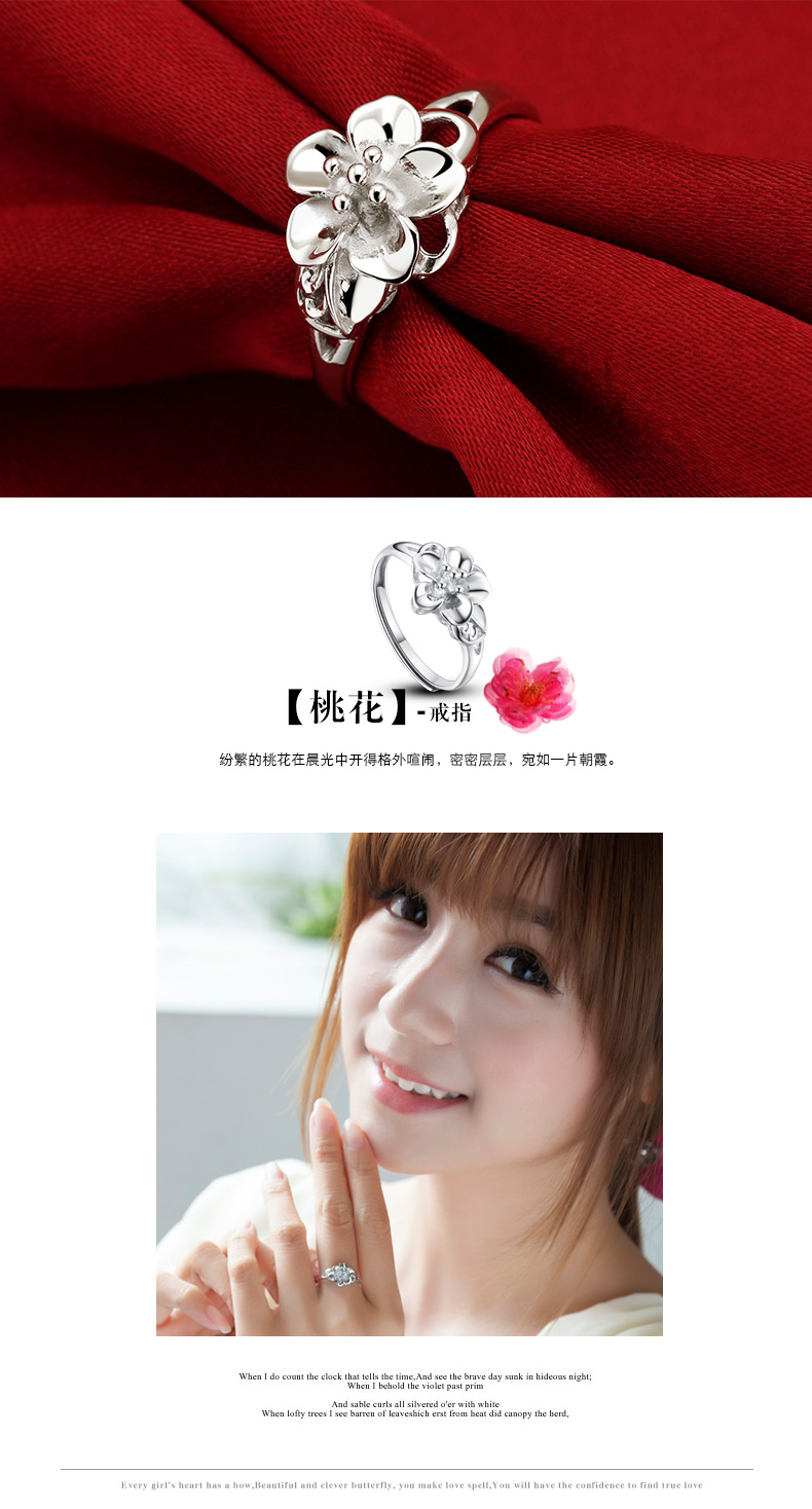 设计点:精致桃花 促人缘时尚戒指 日常必备 925纯银 抛光 送恋人 送自己 生日礼物 表白礼物 情人节礼物纪念日 | |