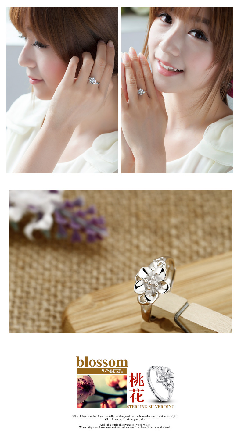 关于爱925银戒指女桃花戒指 女 韩版 时尚 银指环银戒子开口 | |
