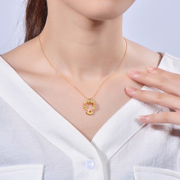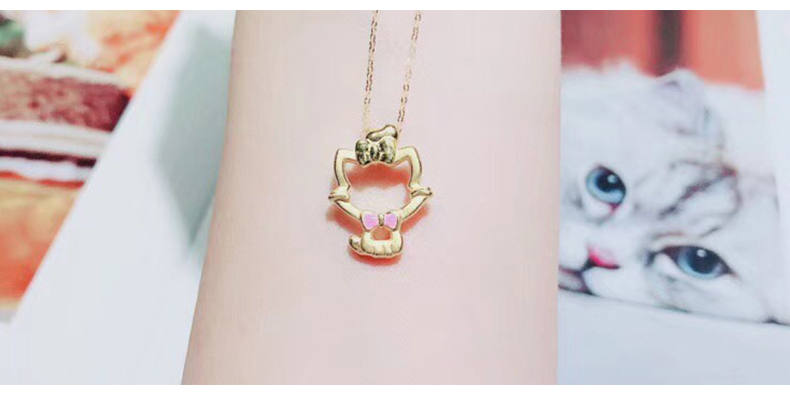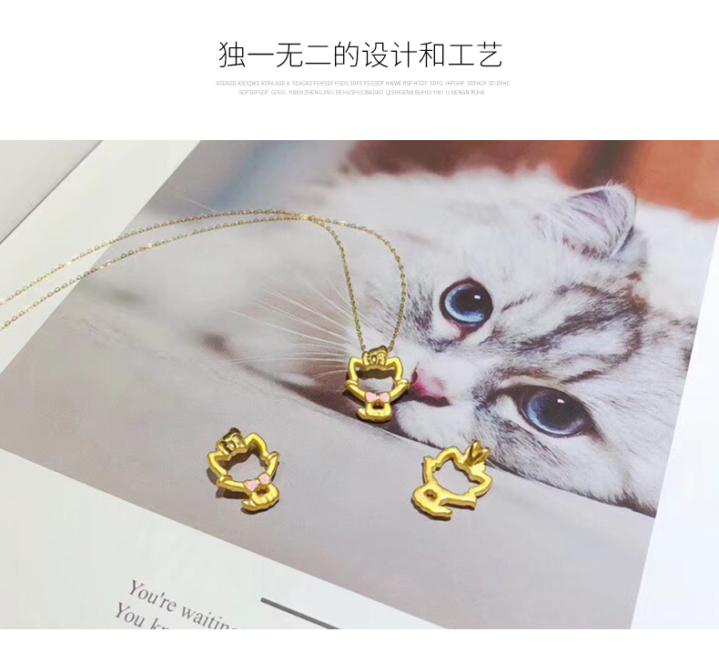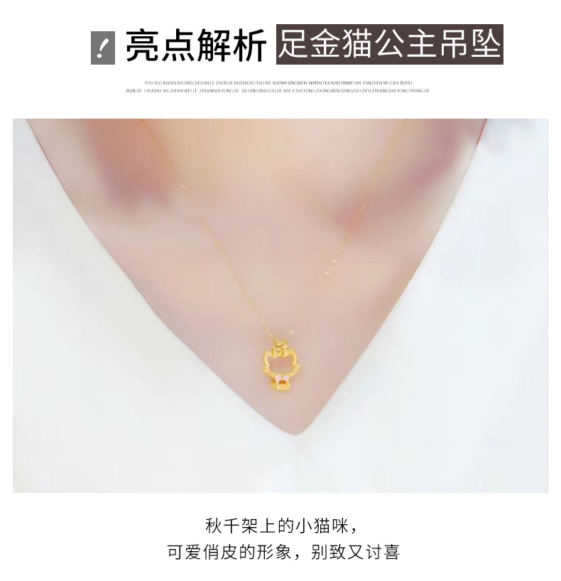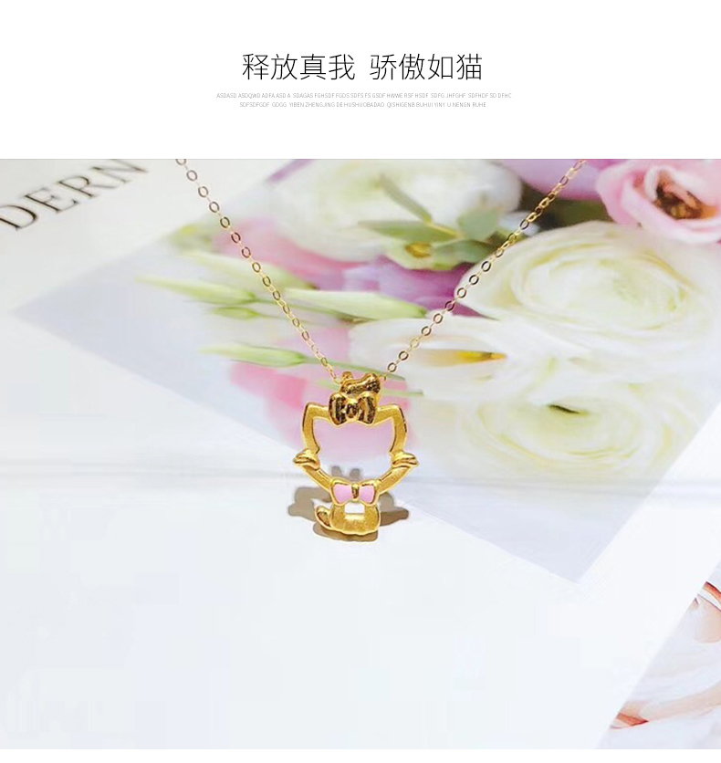 黄金项链女999足金猫咪吊坠套链项链坠细链K金链新款正品颈首饰