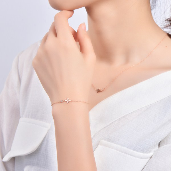 18K金手链女款K金手镯手环玫瑰金四叶草钻石手链细链au750手饰