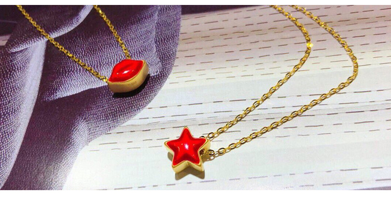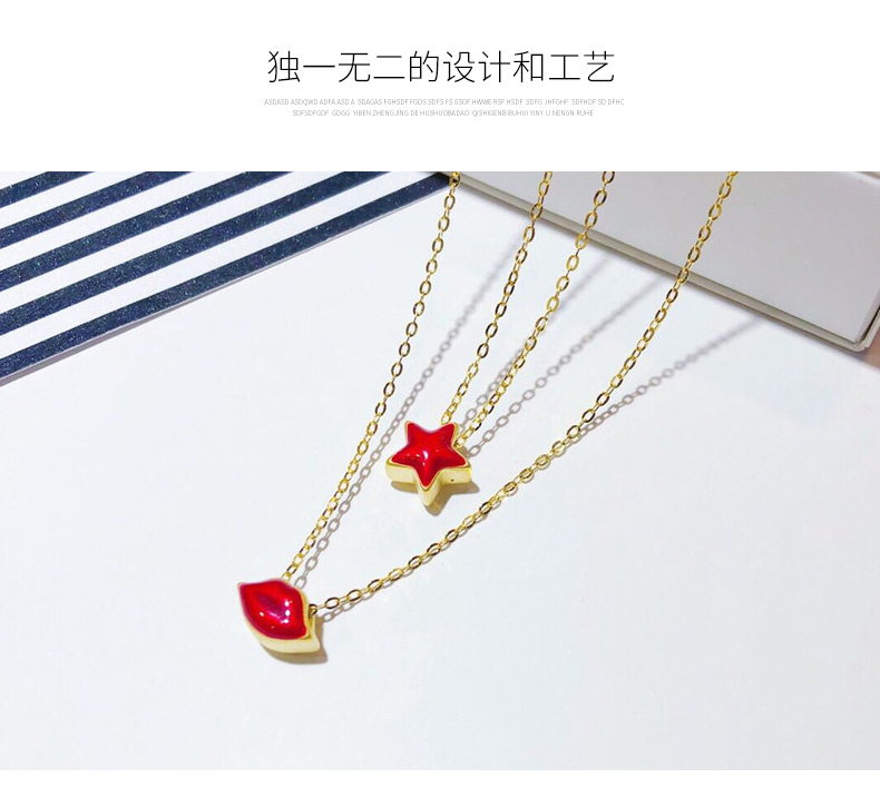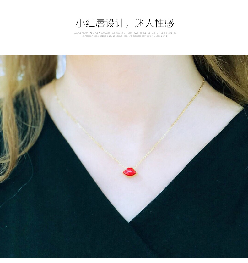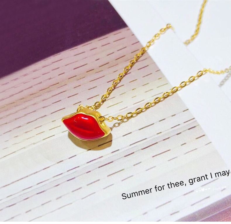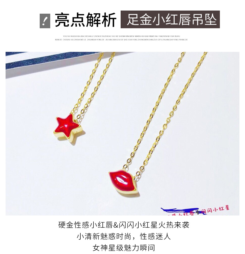 黄金项链女款3D硬足金999小红唇吊坠红色烤漆新款18K金O字链首饰