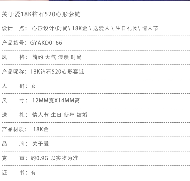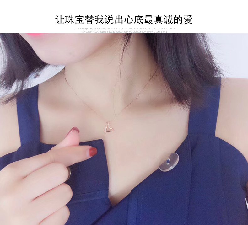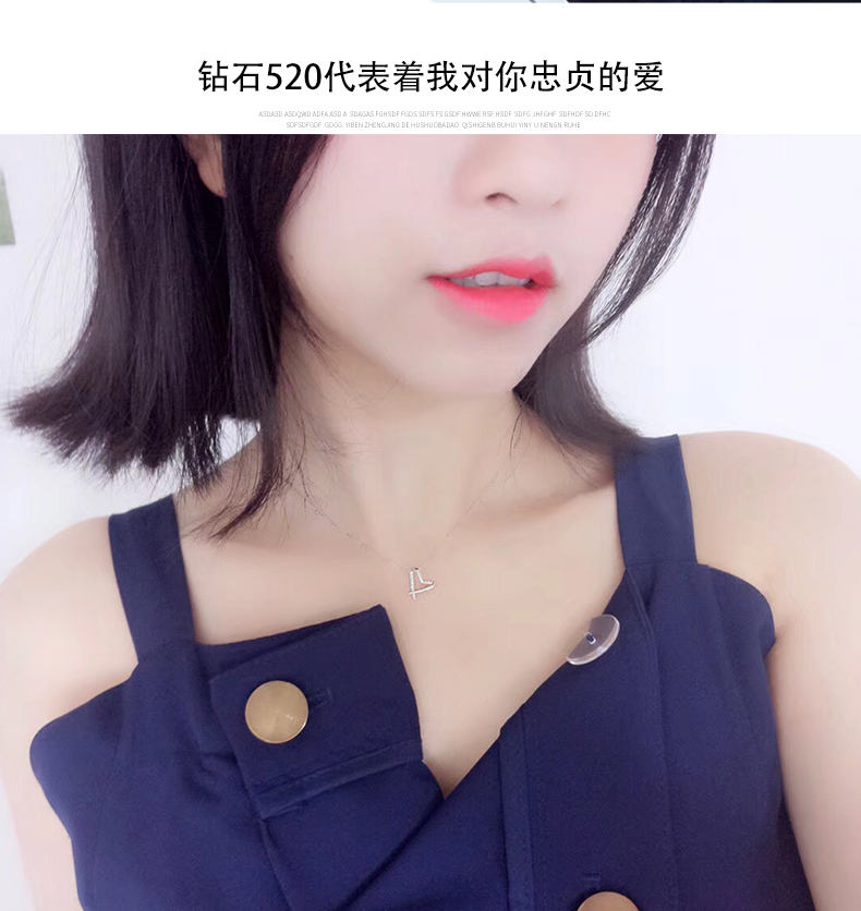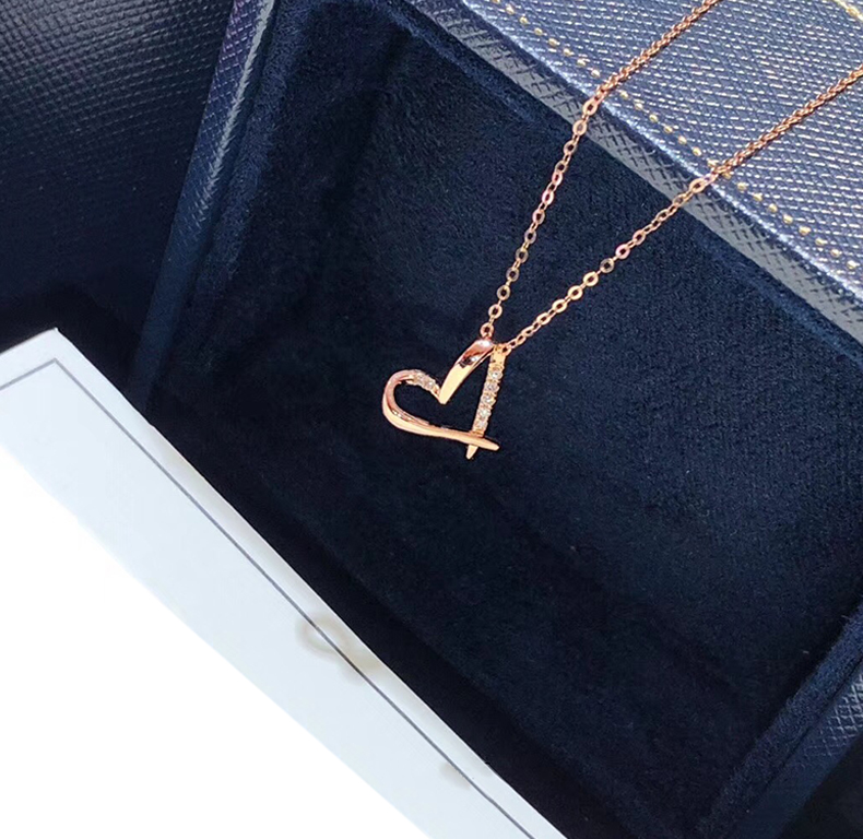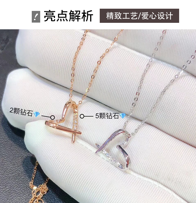 彩金项链女18K金镶嵌钻石心形吊坠套链白金彩金细链新款锁骨链