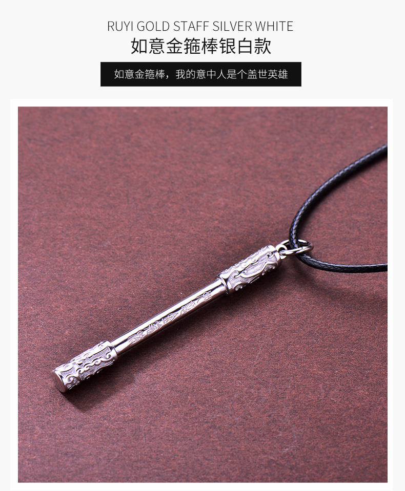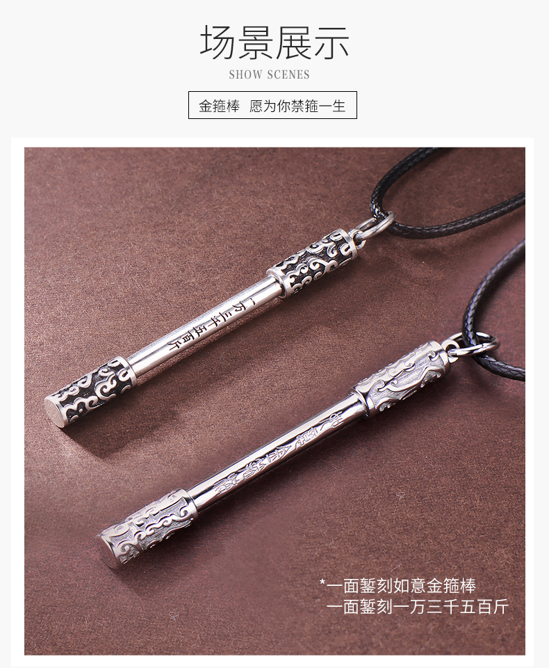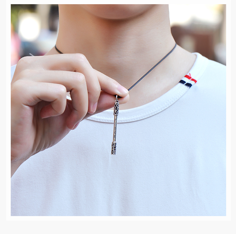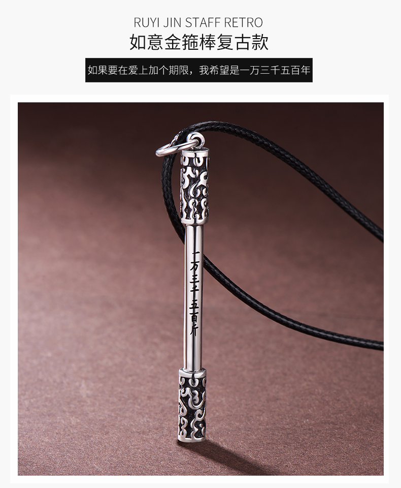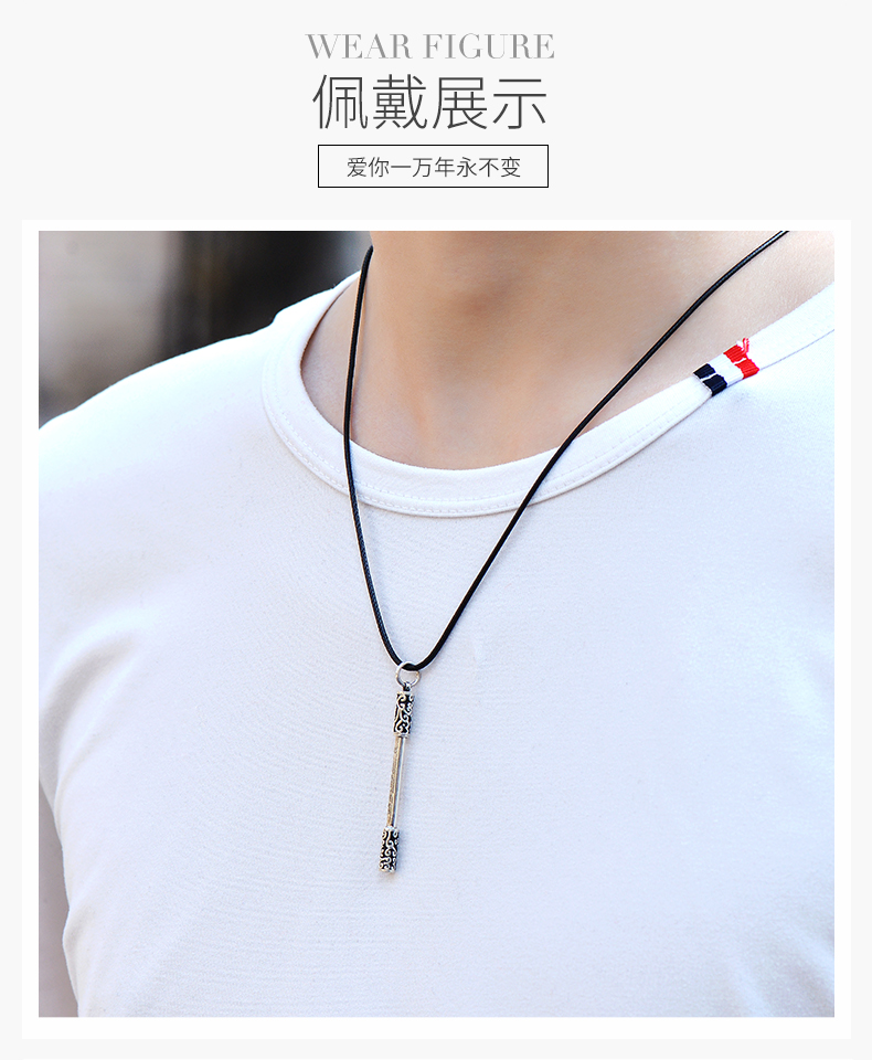 925银项链男如意金箍棒个性复古潮人嘻哈韩版简约学生绳子吊坠