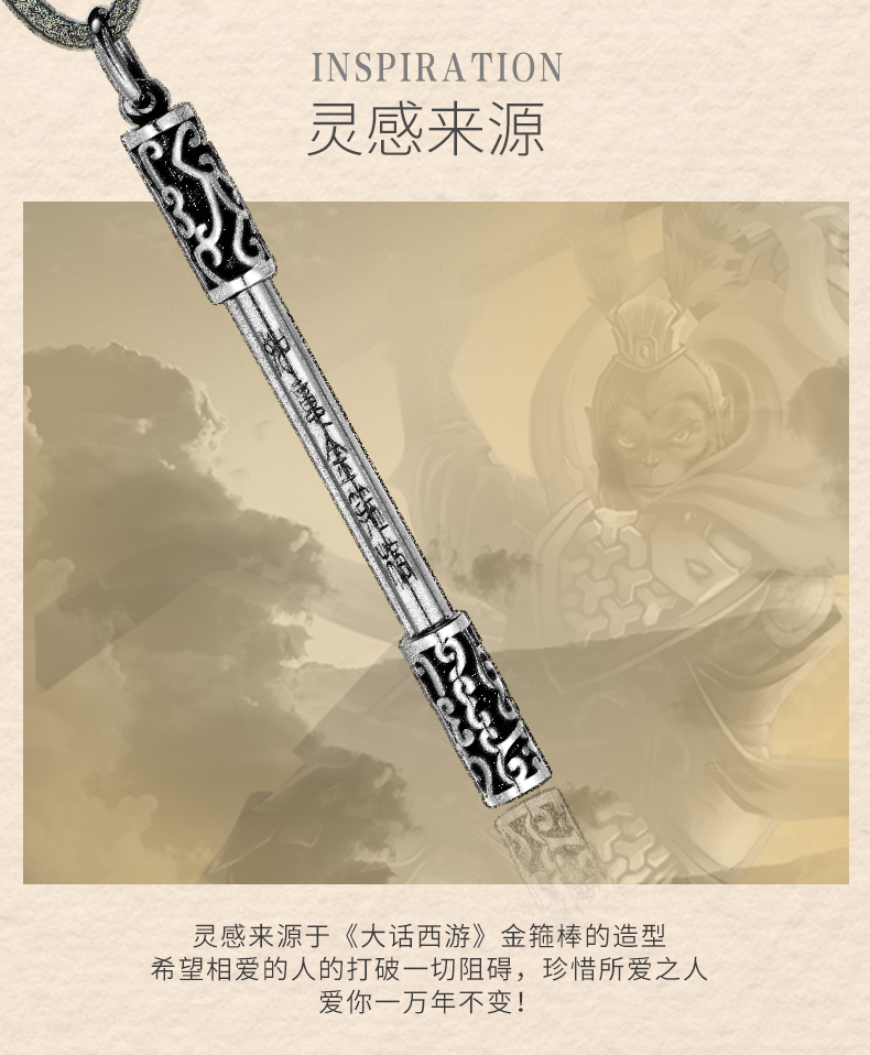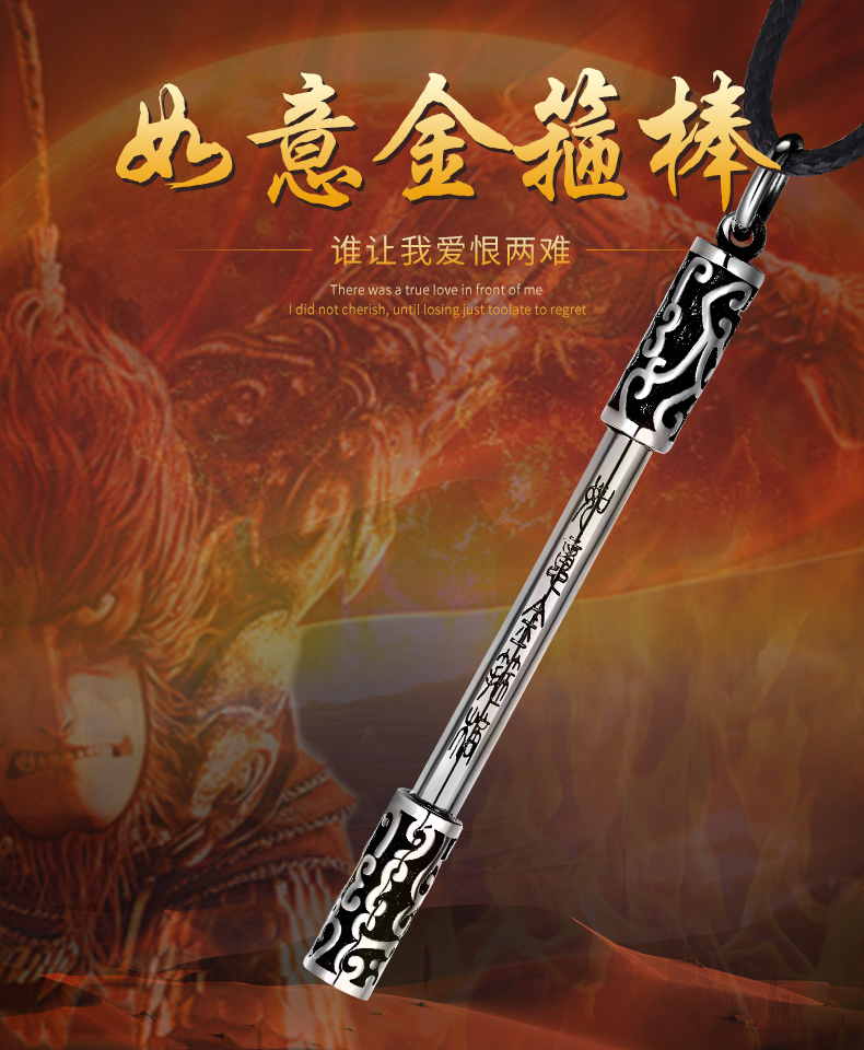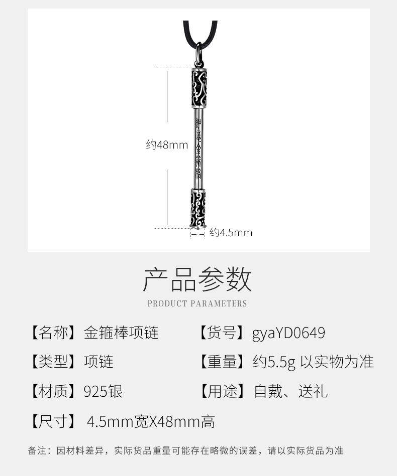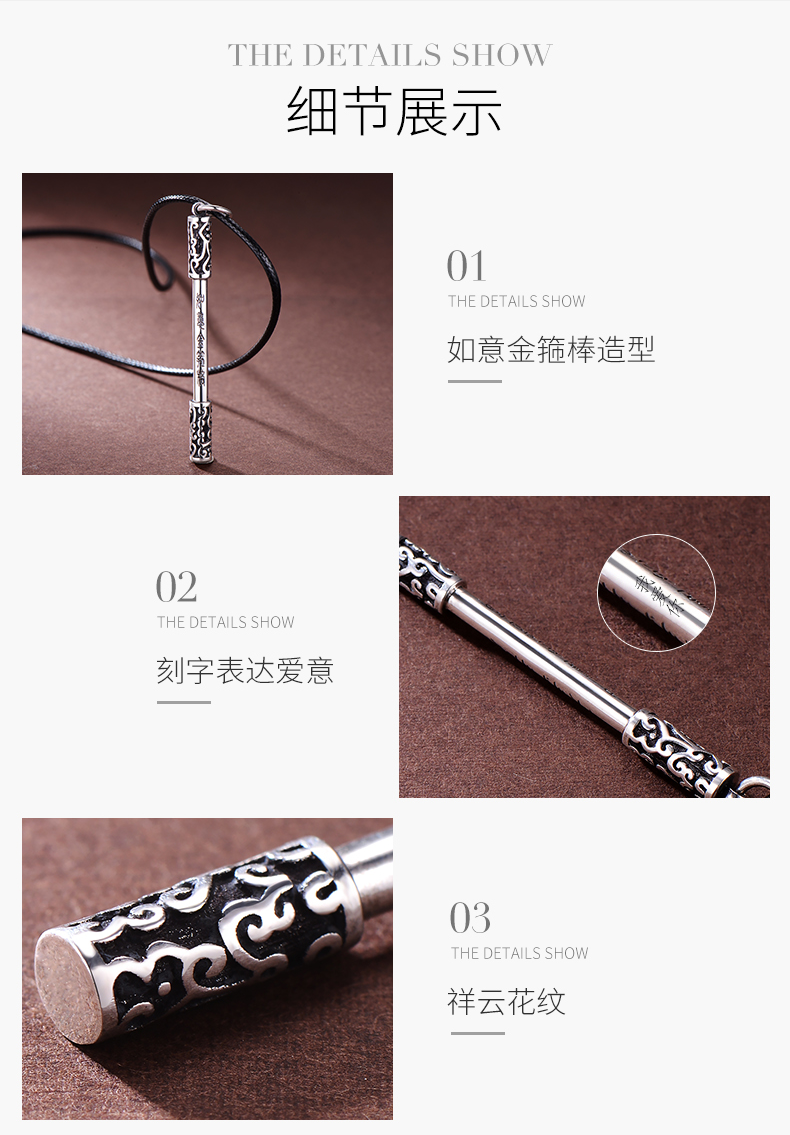 925银项链男如意金箍棒个性复古潮人嘻哈韩版简约学生绳子吊坠