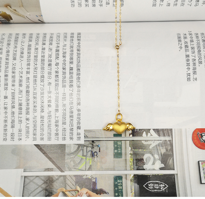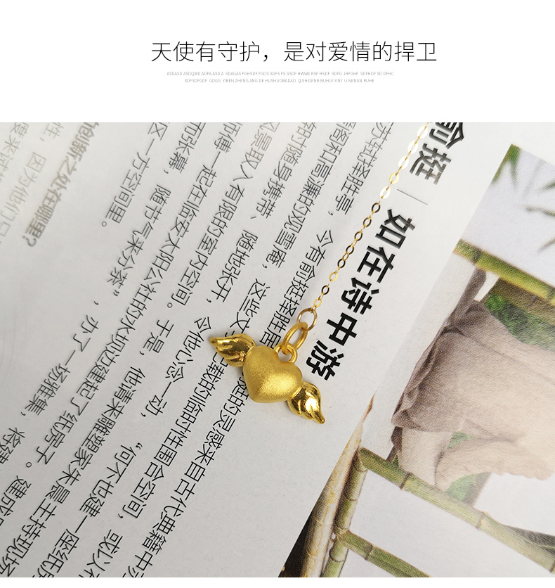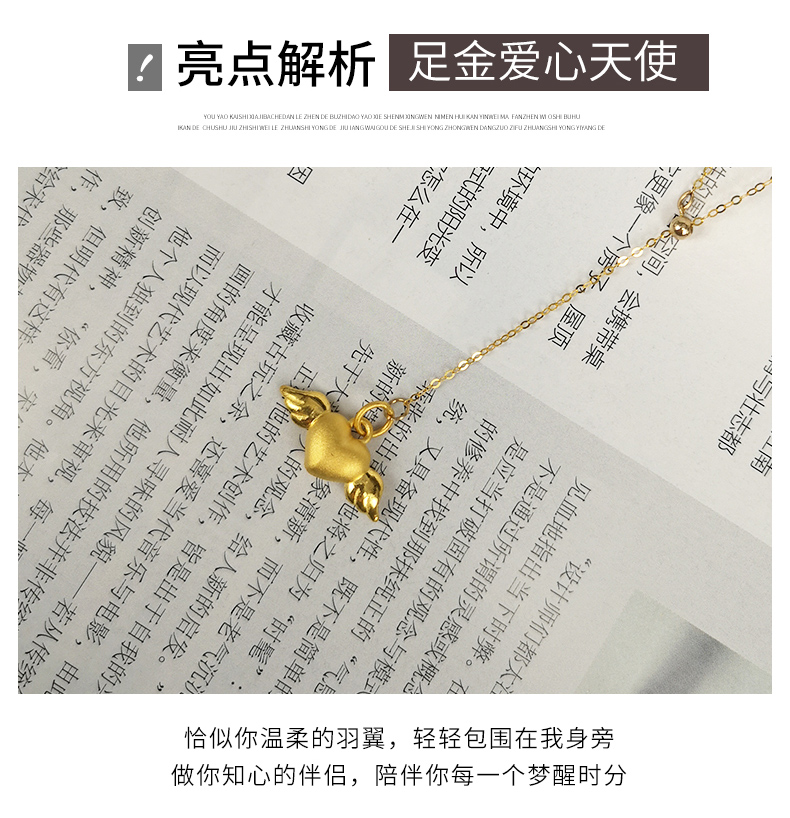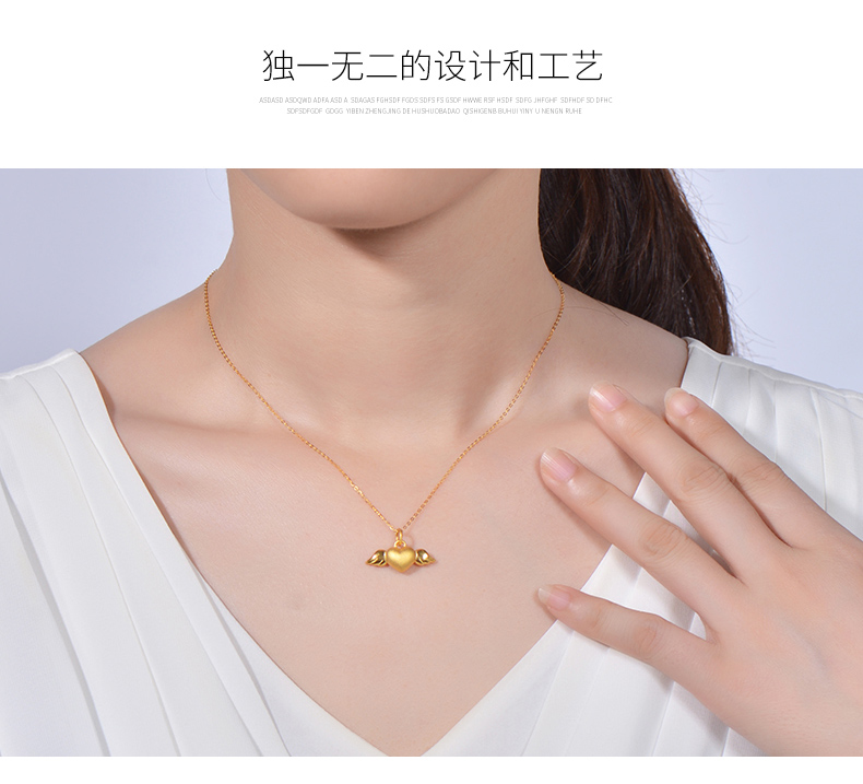 黄金项链女款999足金纯金新款3d硬金爱心天使翅膀套链18K金锁骨链