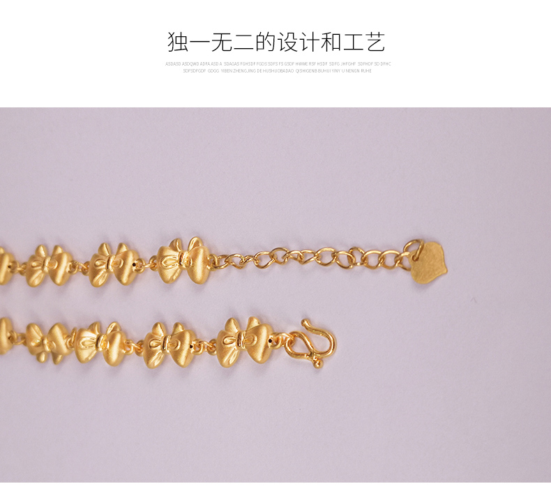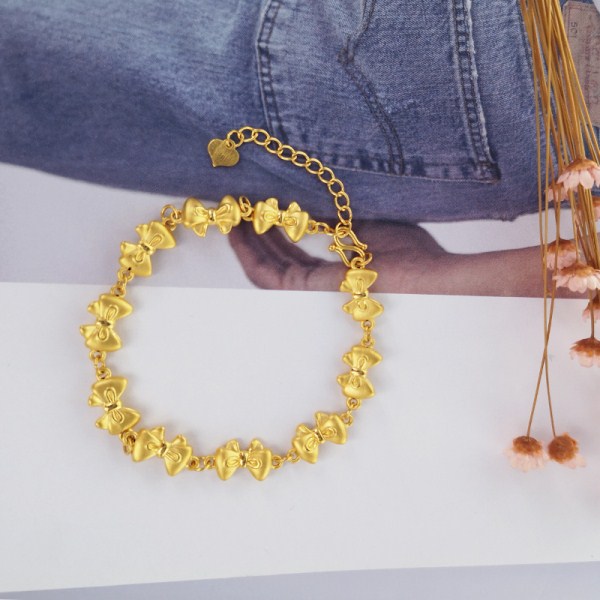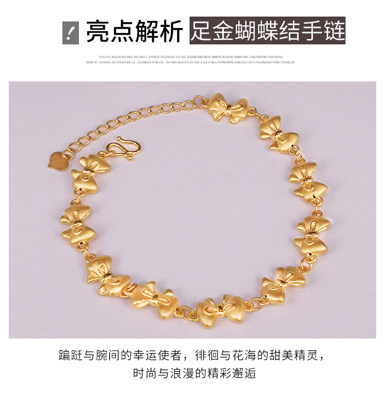 黄金手链999足金硬金蝴蝶结手串手镯女款时尚可调节手环手饰品