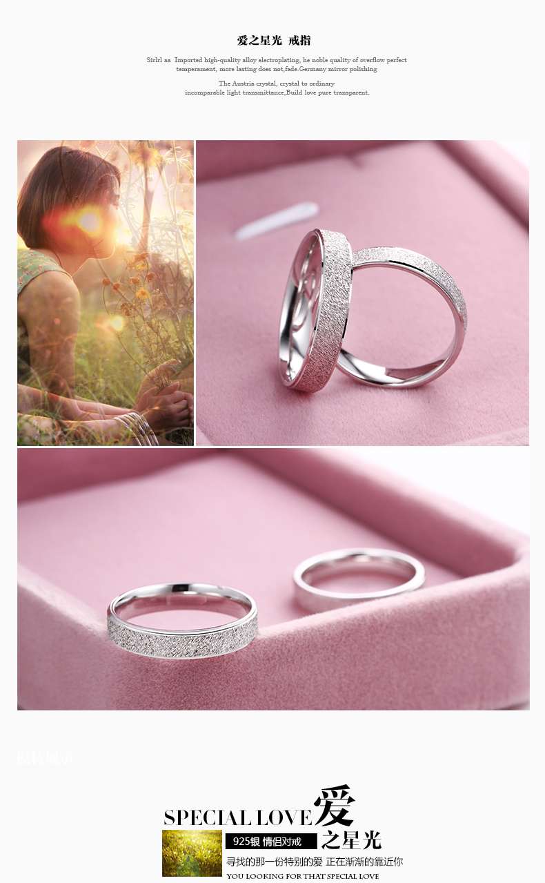 设计点:简约之美 时尚对戒 大气优雅 925银 闪亮 抛光 送恋人 送自己 生日礼物 定情信物 情人节礼物 |
