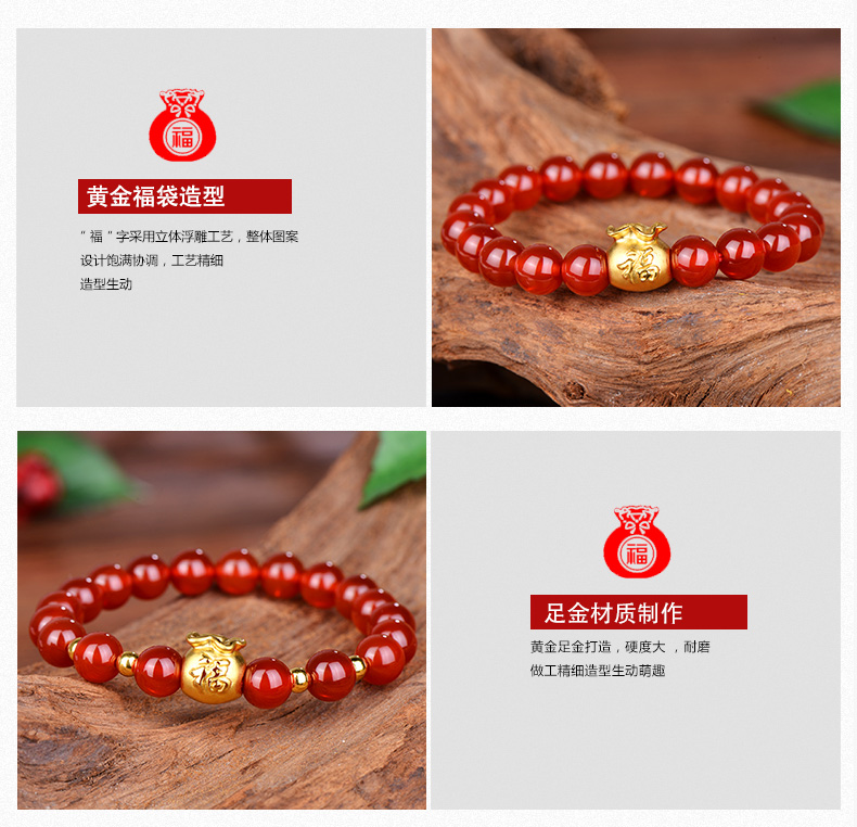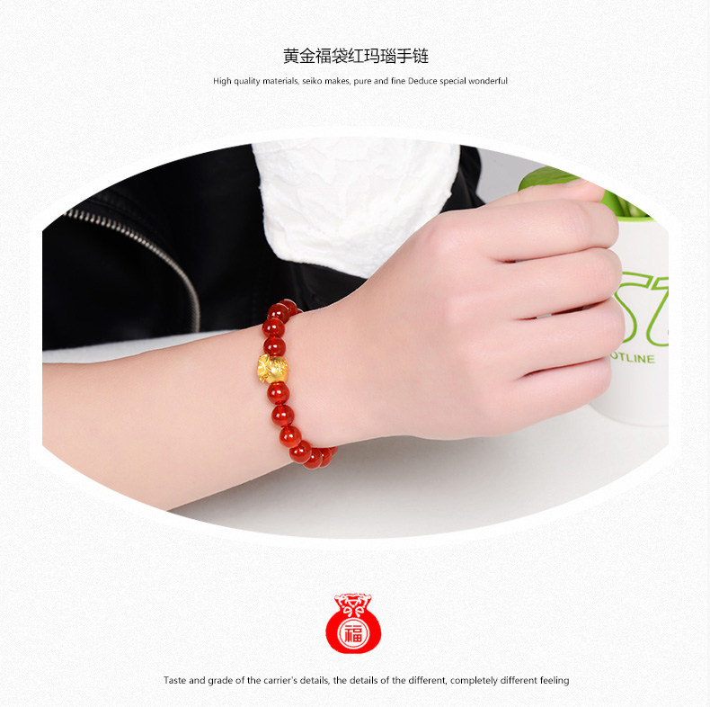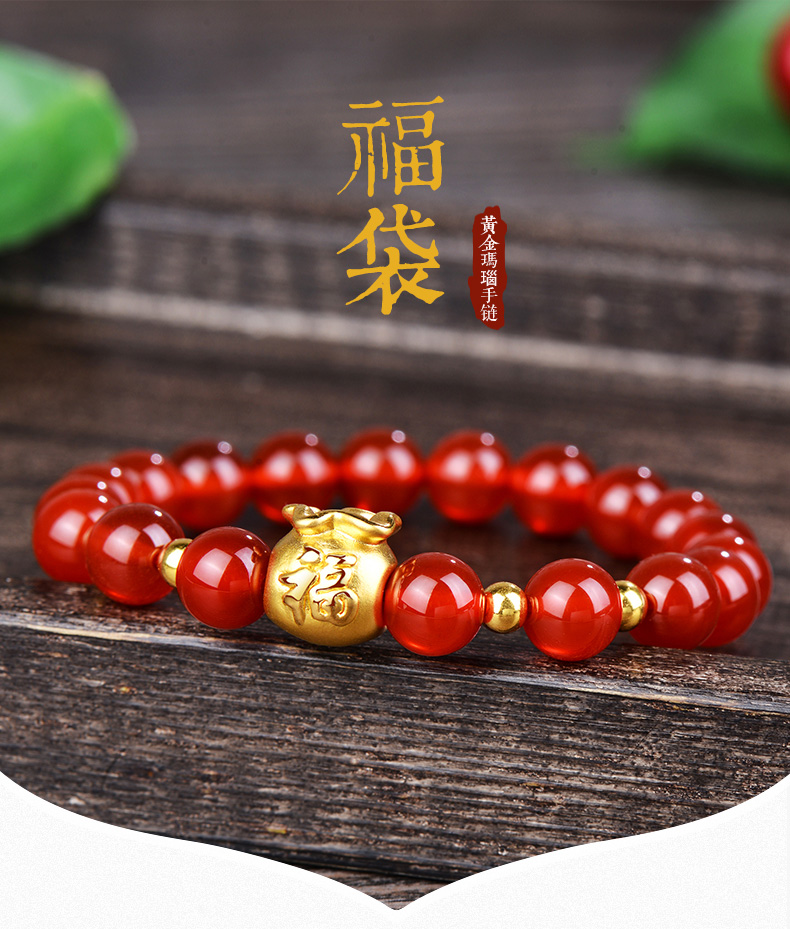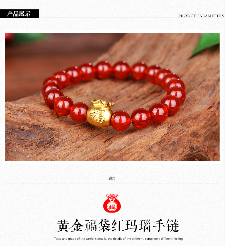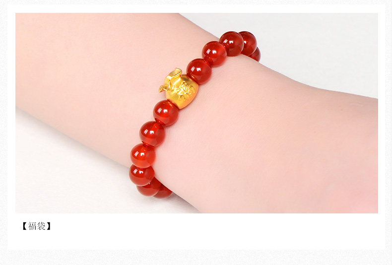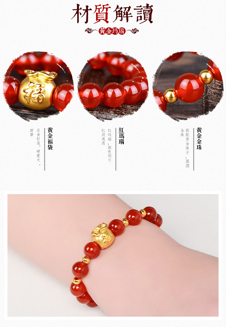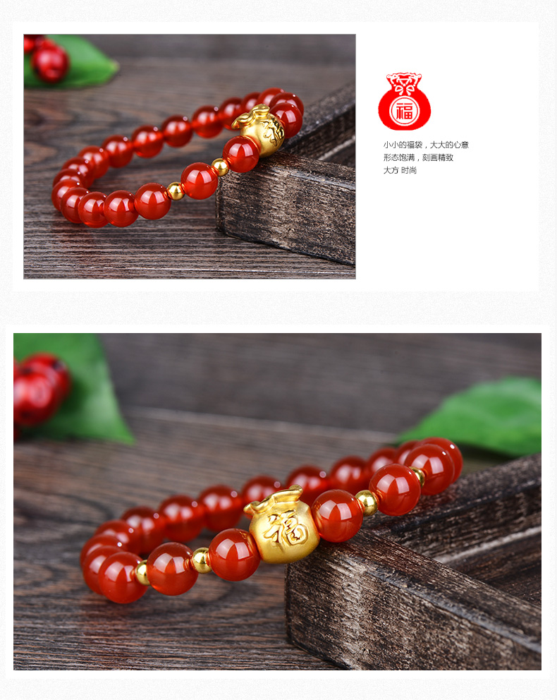 设计点:福袋足金手链 高贵典雅 足金 红玛瑙 送爱人 新年礼物 情人 |
