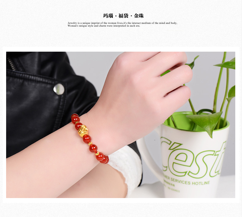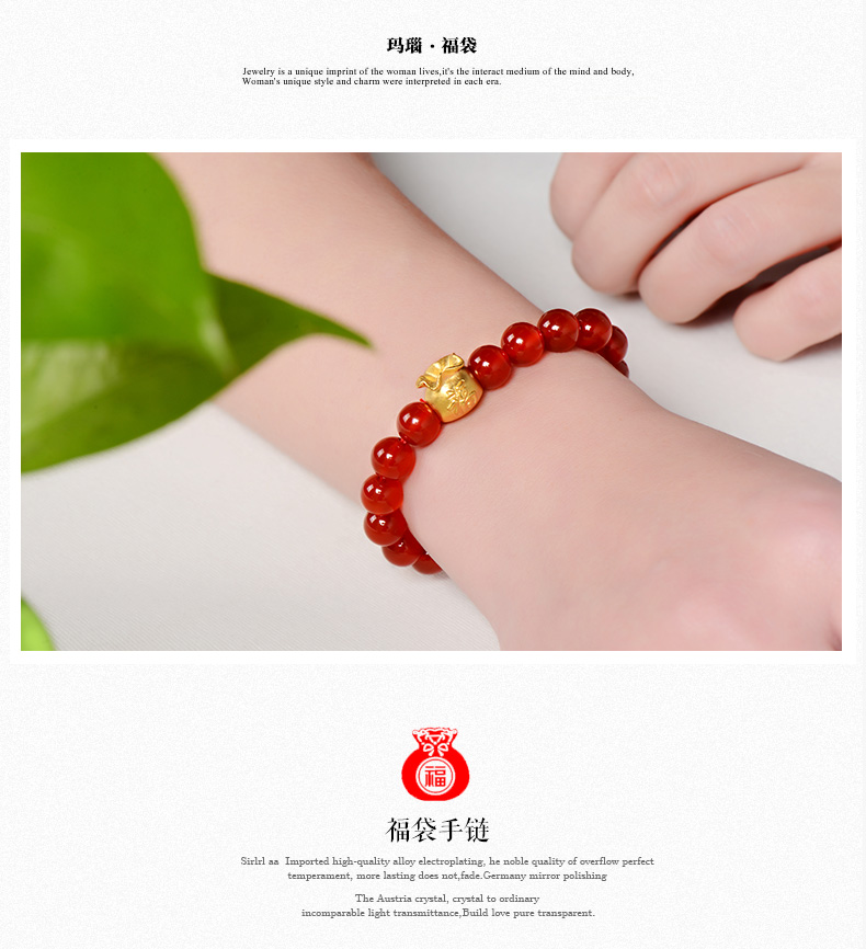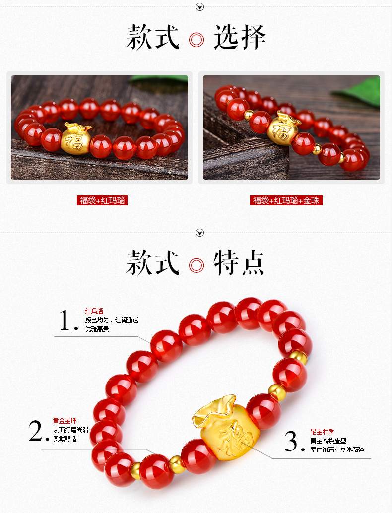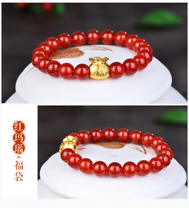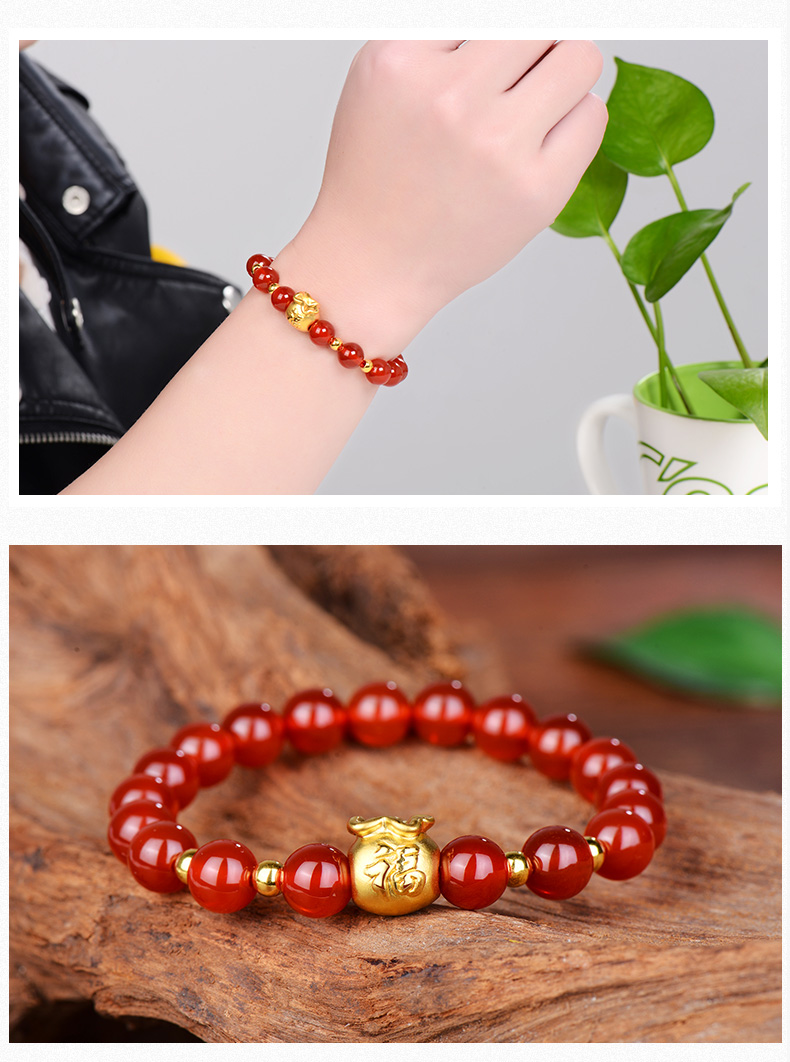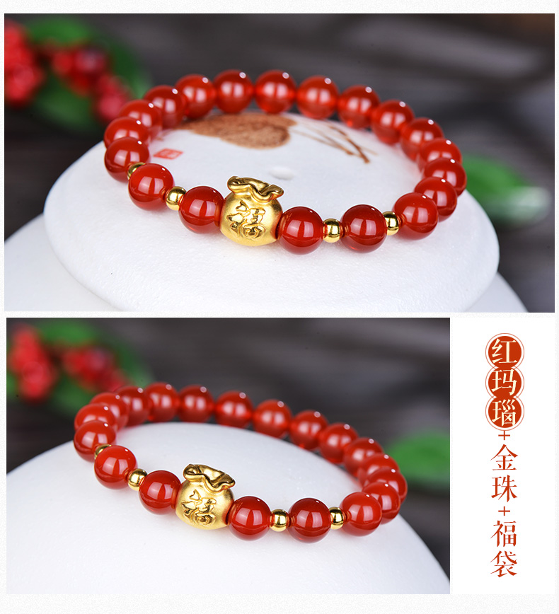设计点:福袋足金手链 高贵典雅 足金 红玛瑙 送爱人 新年礼物 情人 |