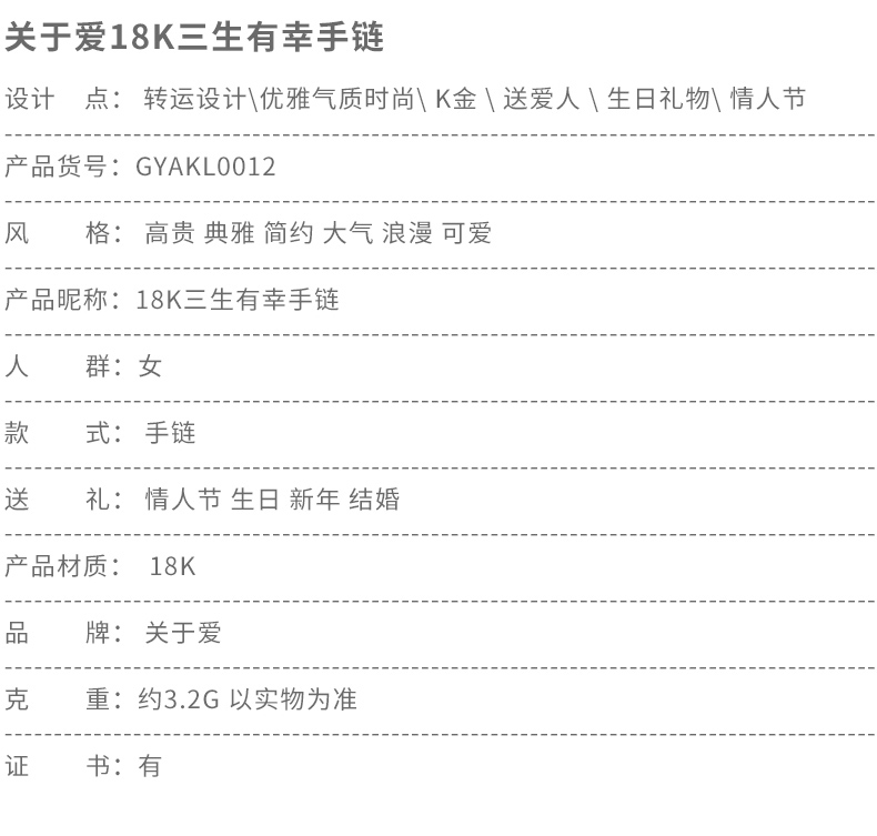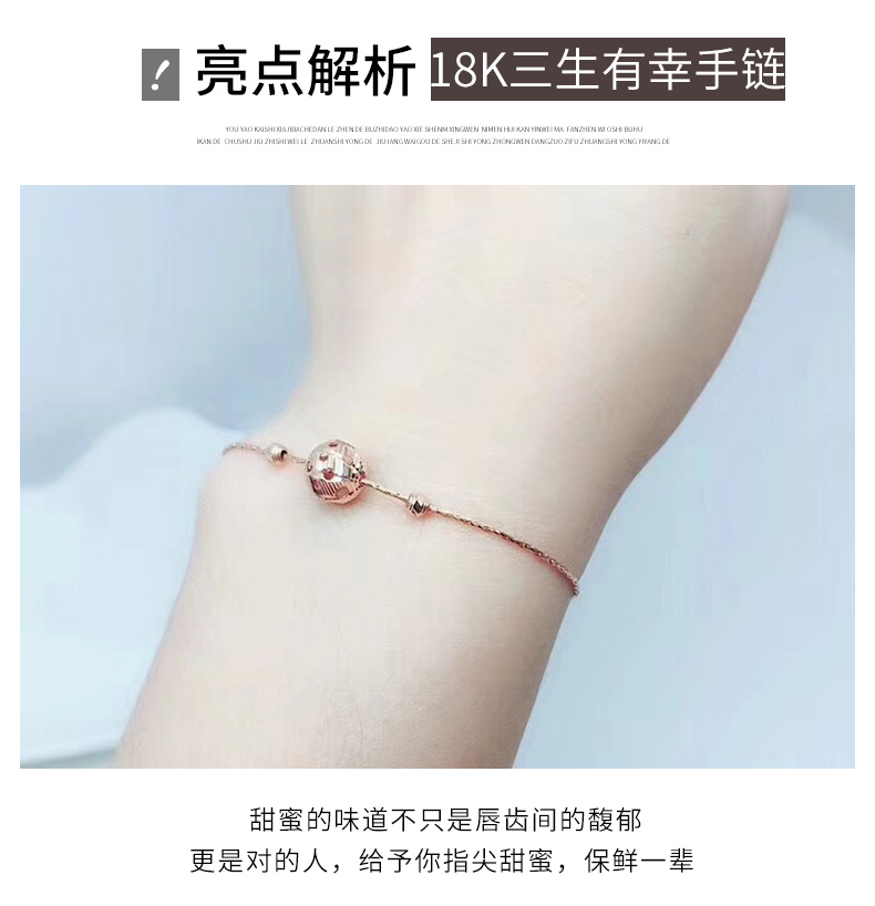 彩金手链女18k玫瑰金au750手链宫铃转运珠K金细链手环珠宝首饰
