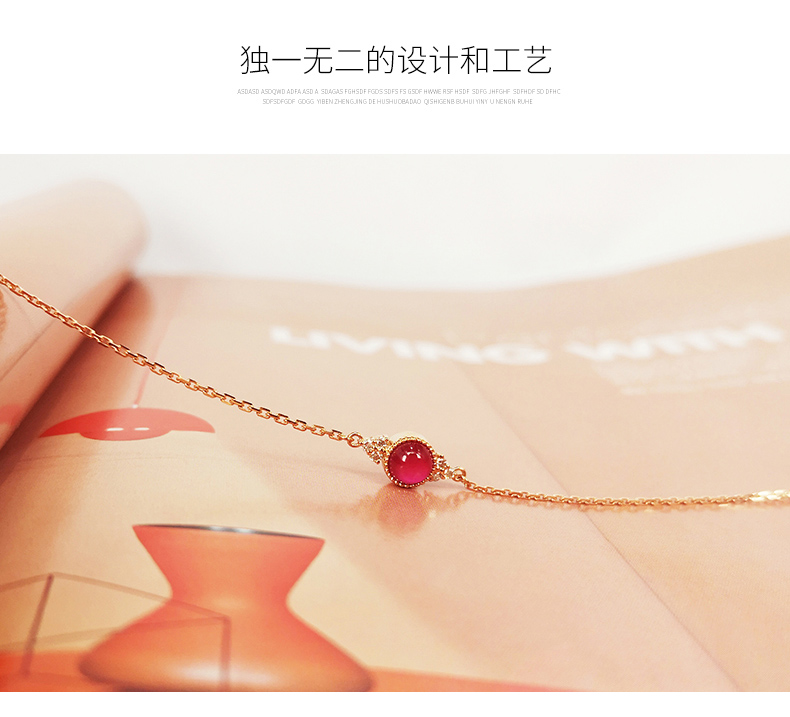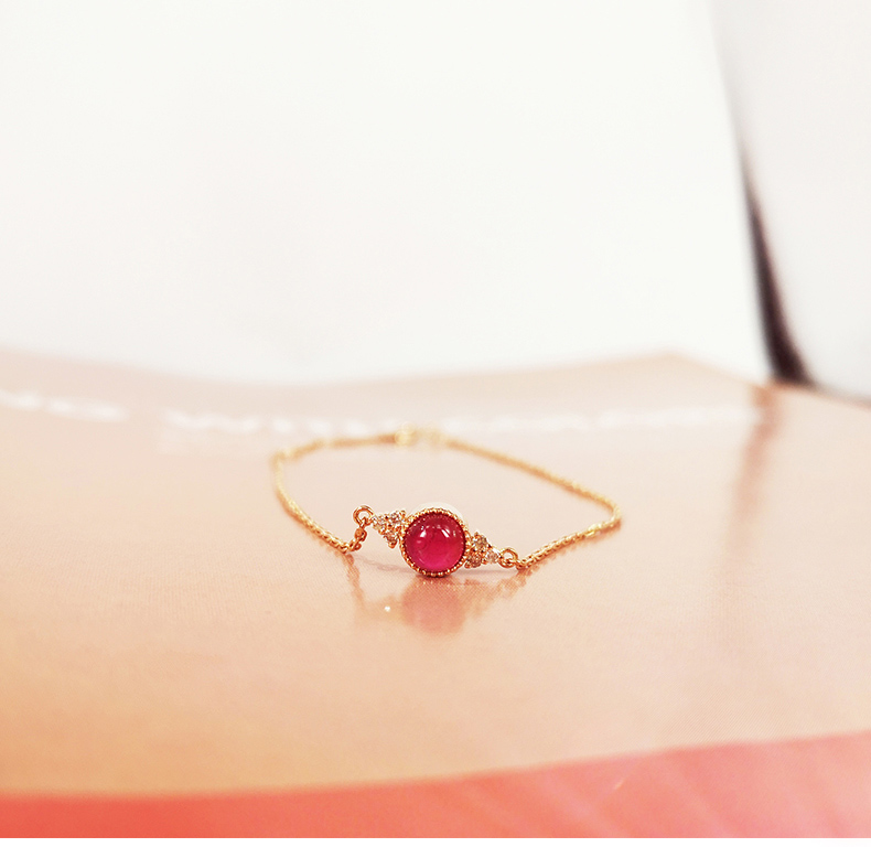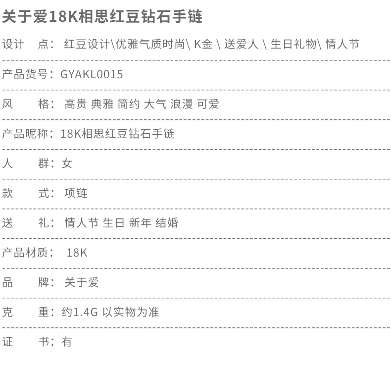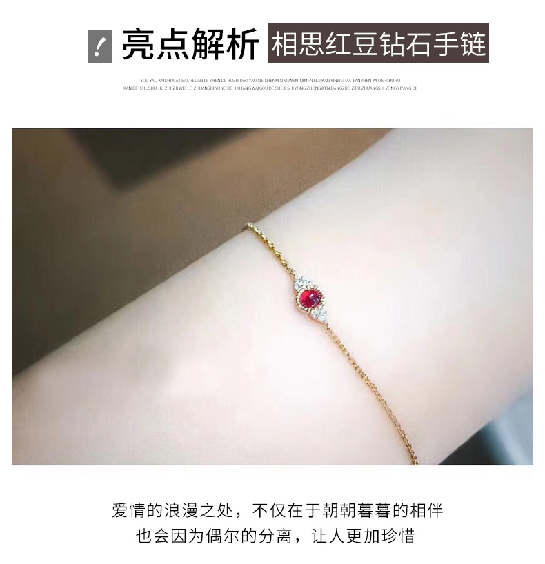 18k金手链相思红豆钻石手链玫瑰金彩金au750手链女相思豆手饰新款