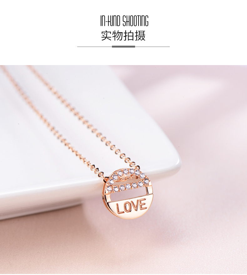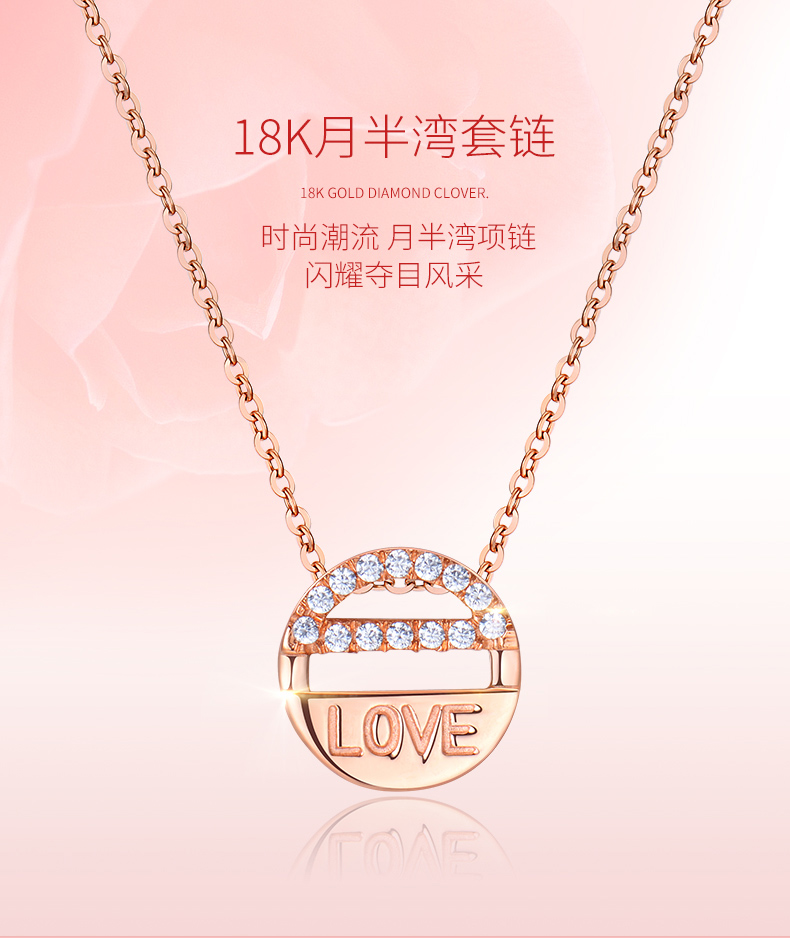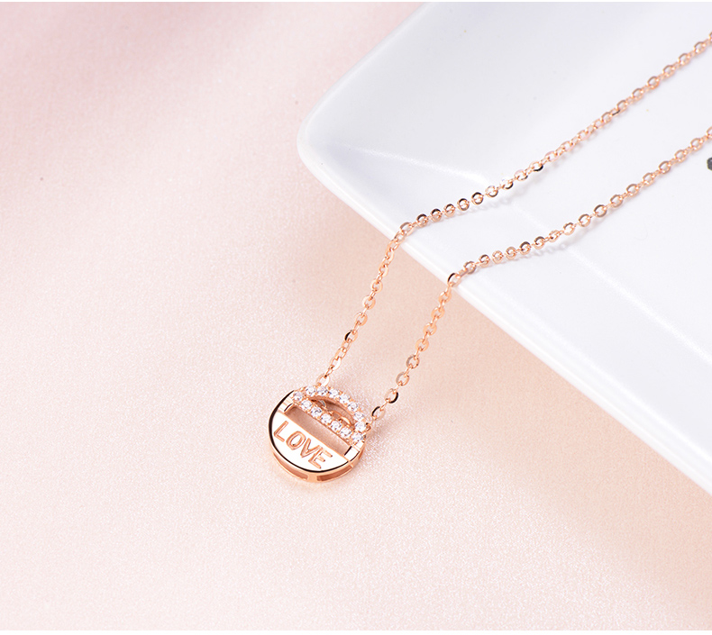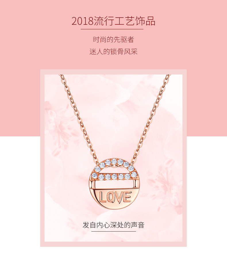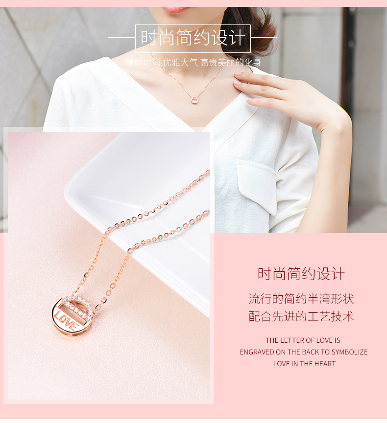 彩金项链女新款18K金项链K金love字母吊坠750套链锁骨链时尚首饰