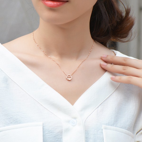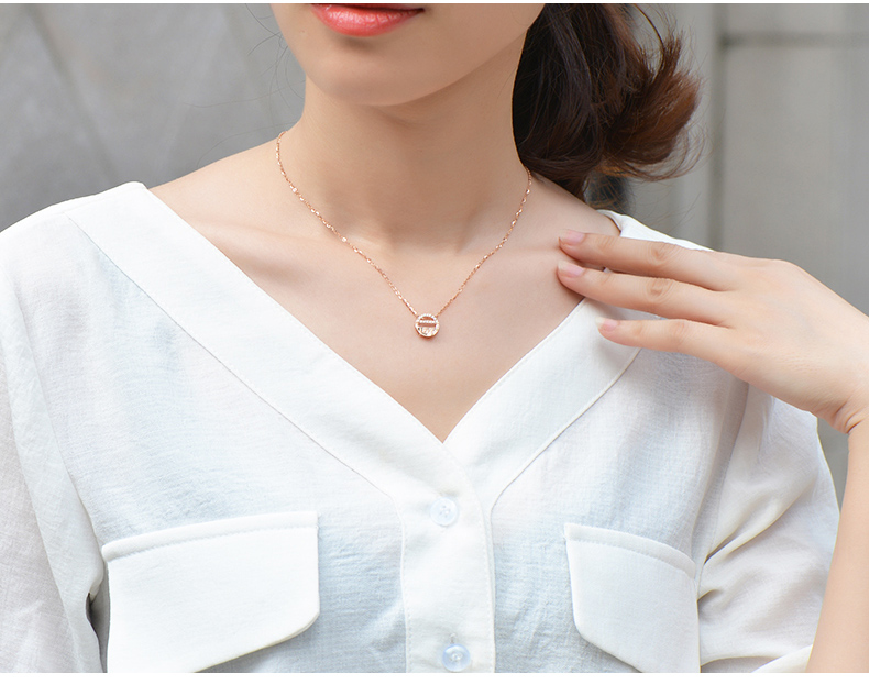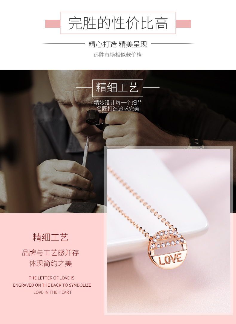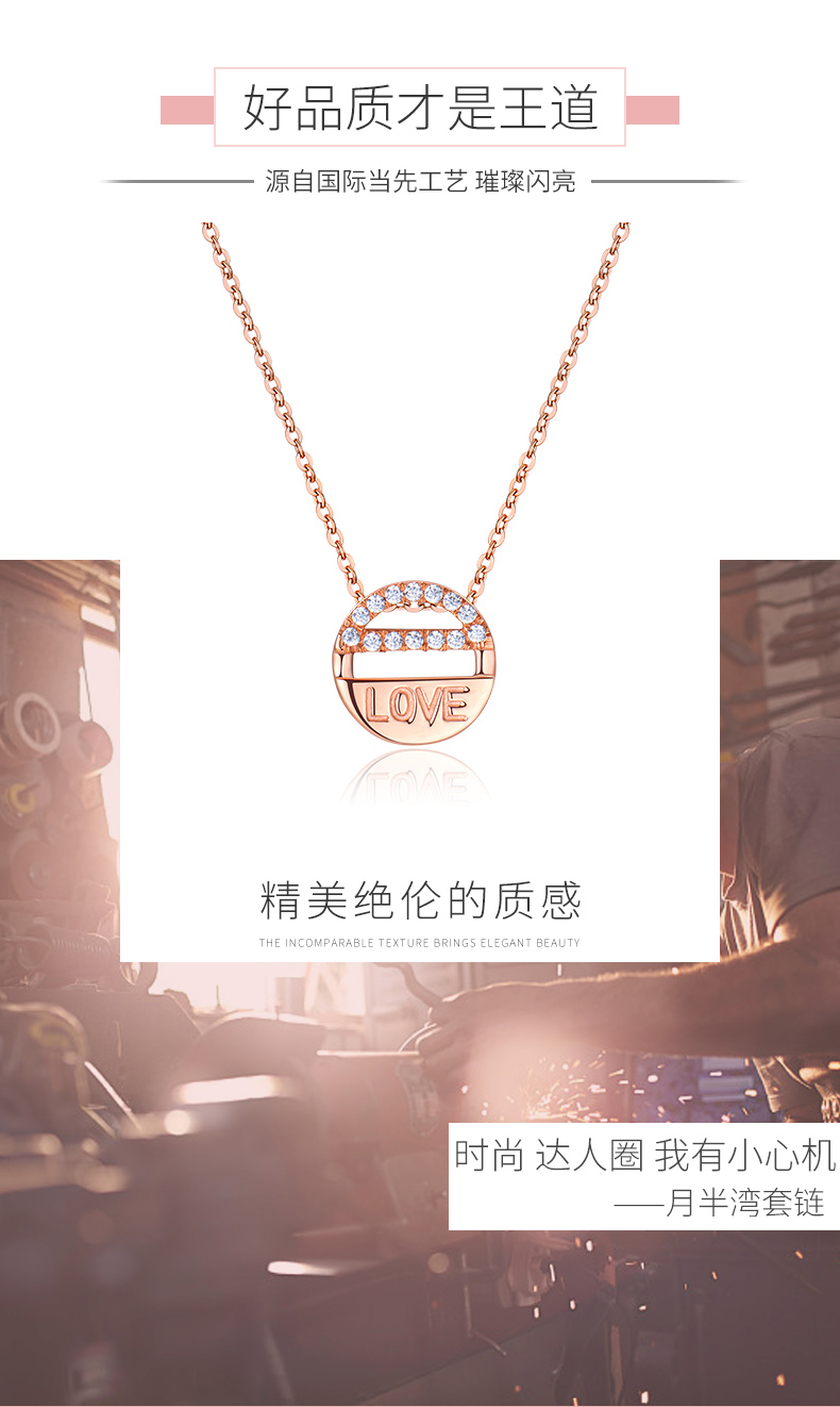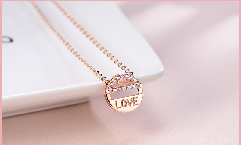 彩金项链女新款18K金项链K金love字母吊坠750套链锁骨链时尚首饰