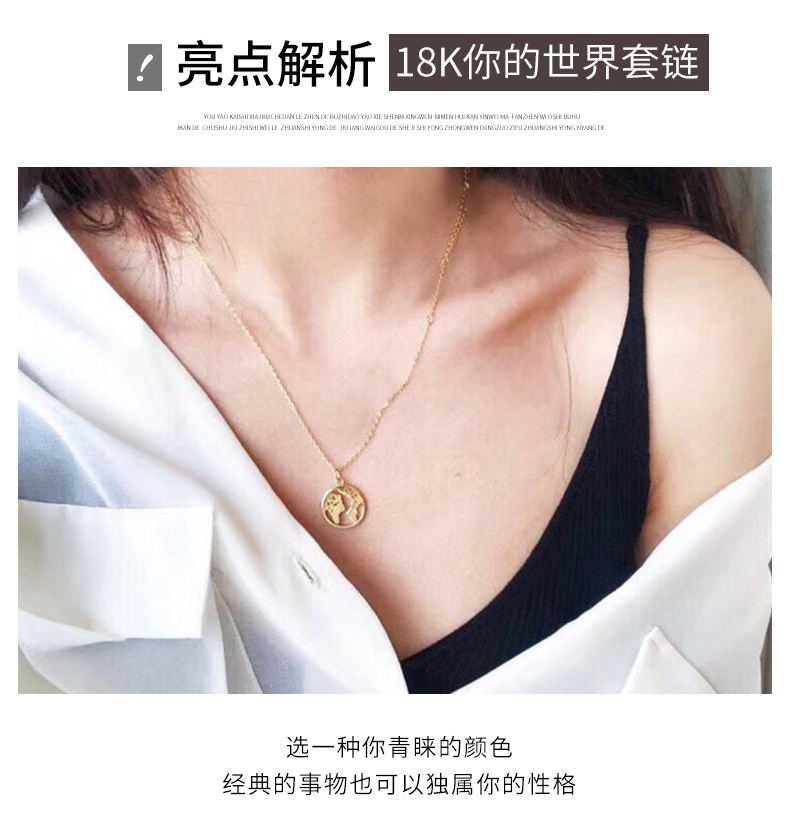 18K黄金项链女款au750圆形镂空吊坠K金套链新款锁骨链细链正品
