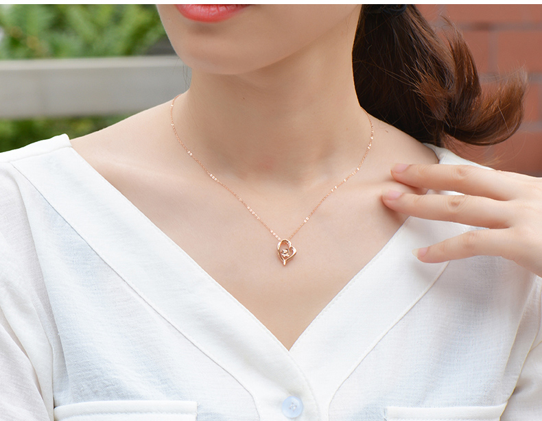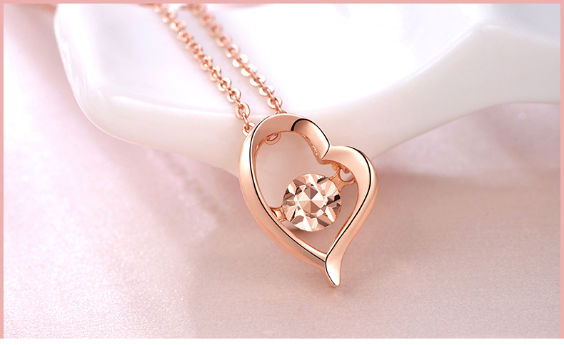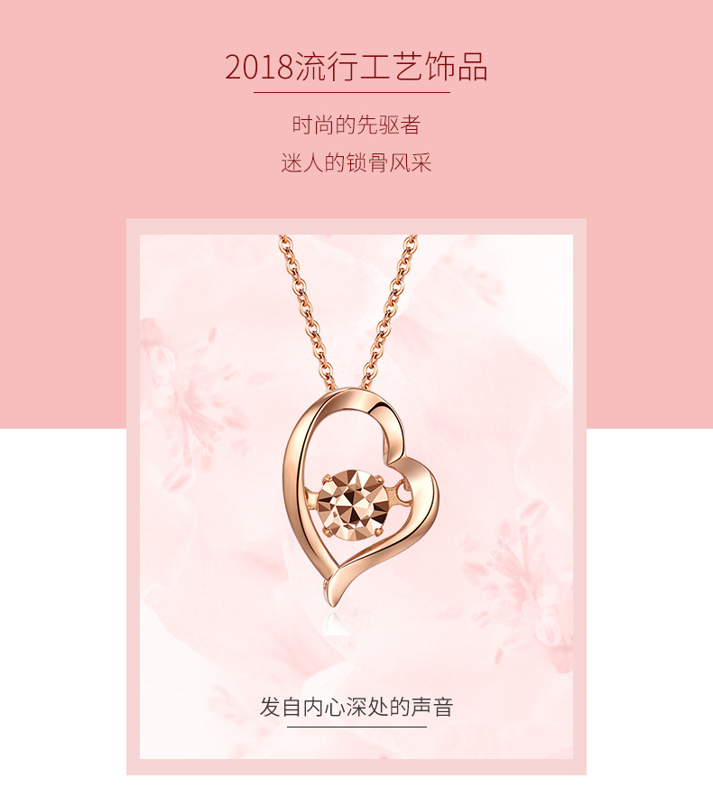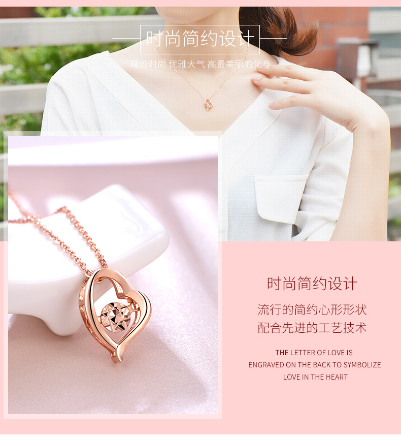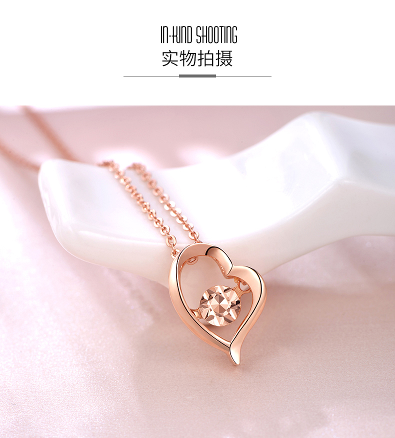 18K金项链女心形彩金吊坠玫瑰金套链节日生日爱心礼物送爱人女友