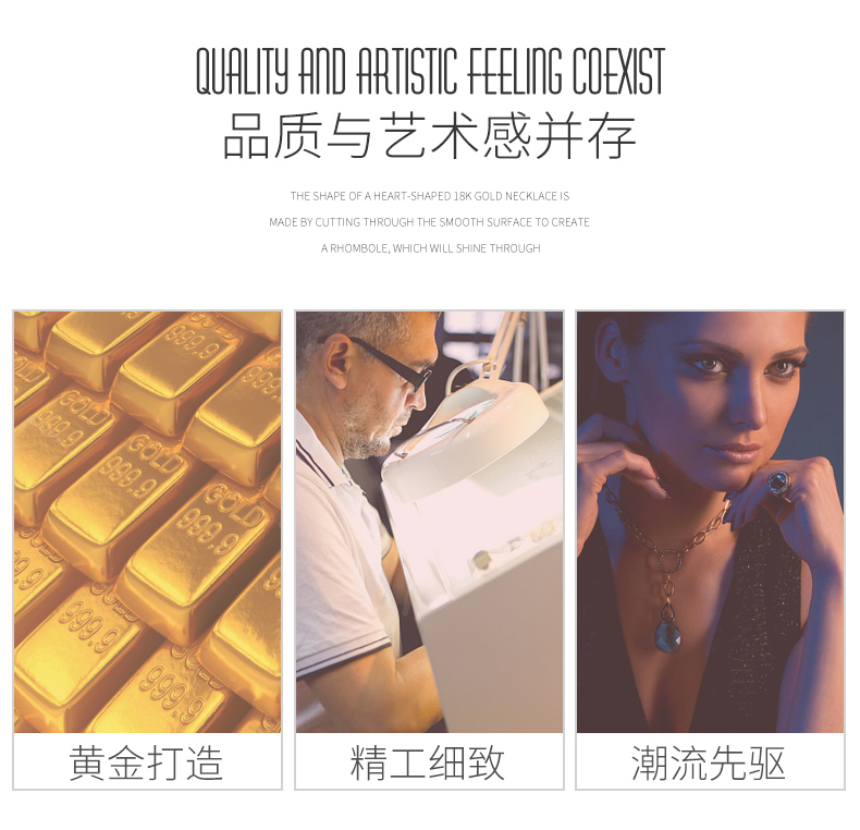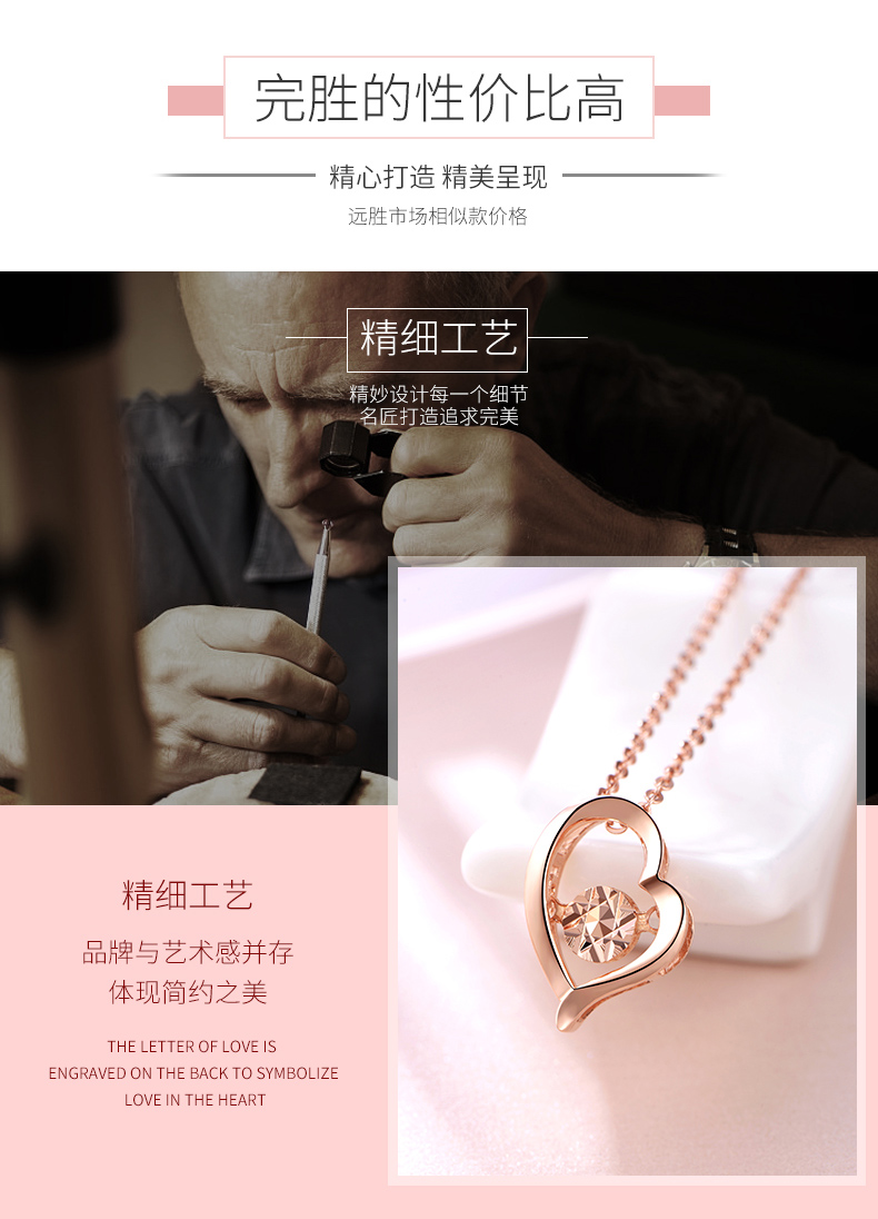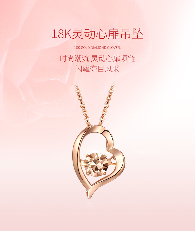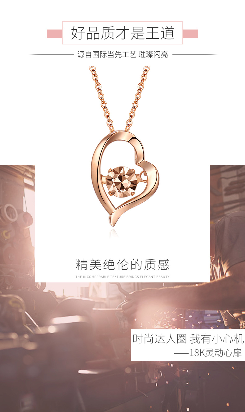 18K金项链女心形彩金吊坠玫瑰金套链节日生日爱心礼物送爱人女友