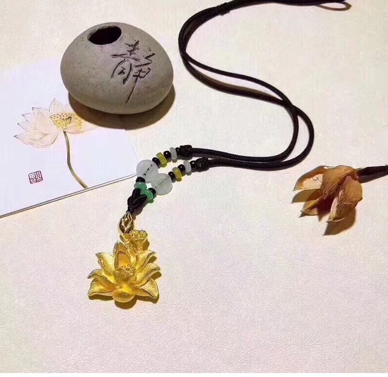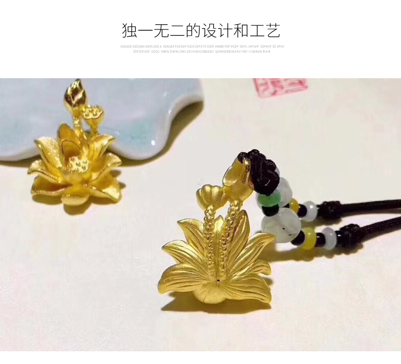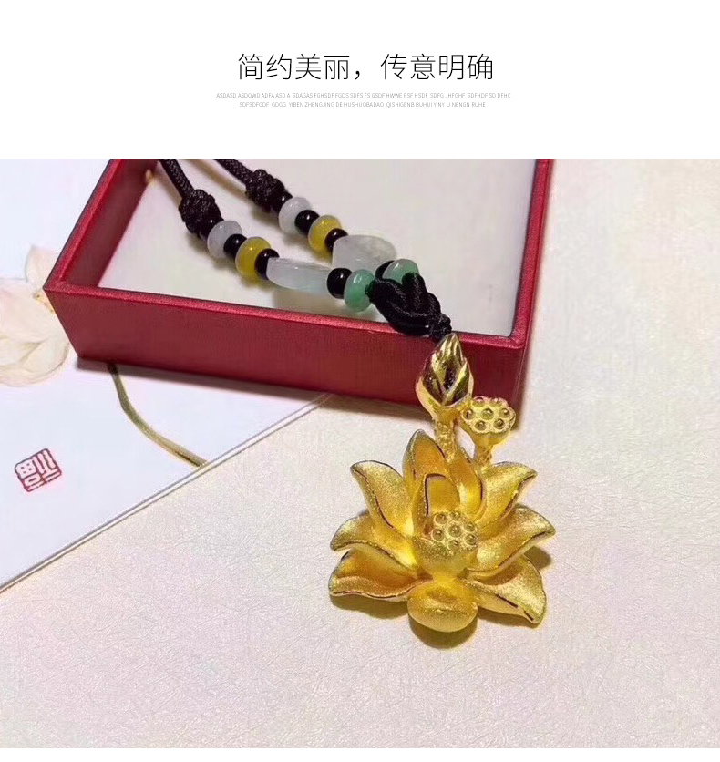 关于爱黄金吊坠足金3D硬金工艺莲花吊坠转运珠项坠女款珠宝首饰